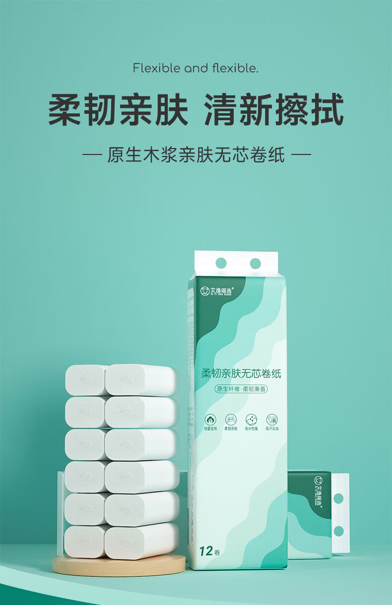 艾逸瑶选柔韧亲肤无芯卷纸12卷...