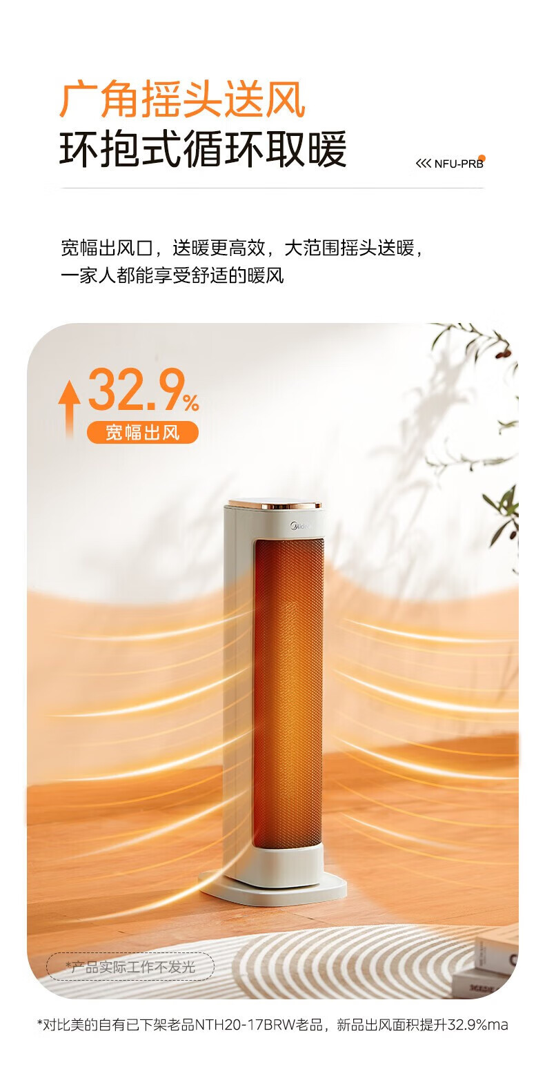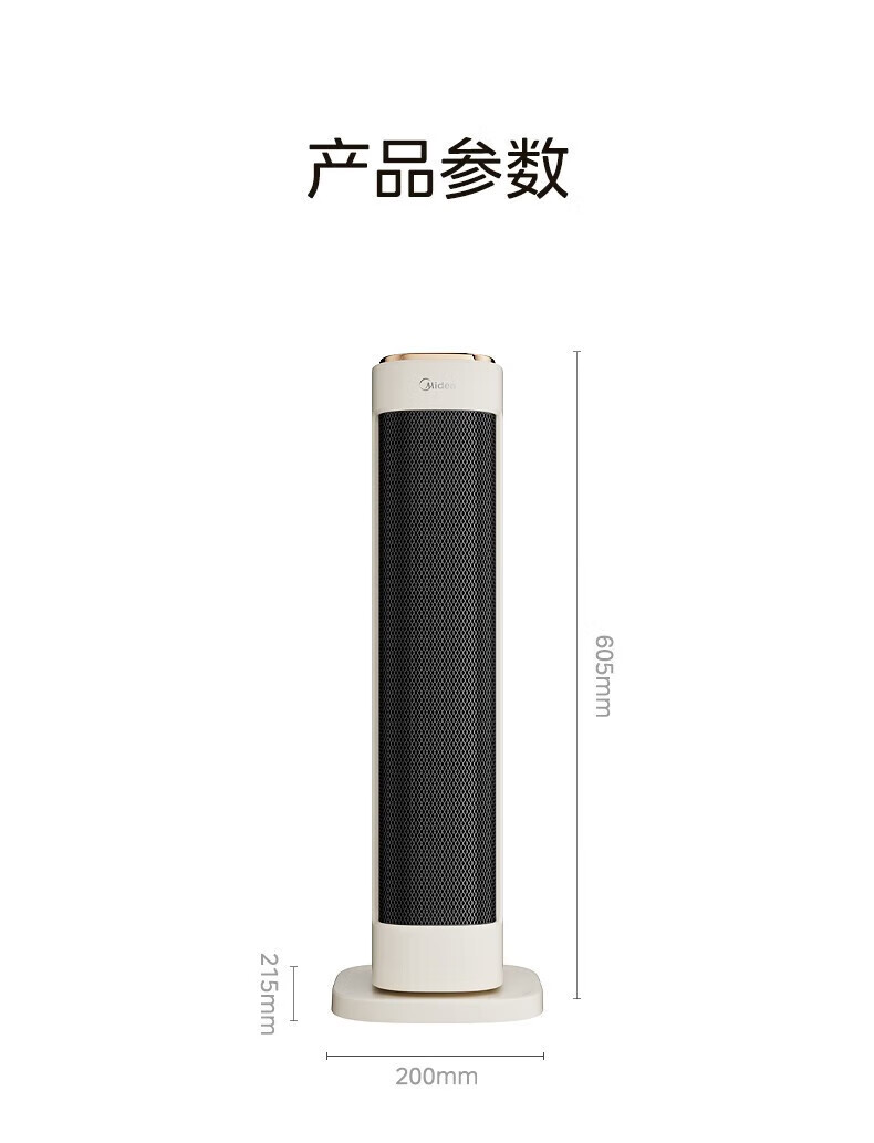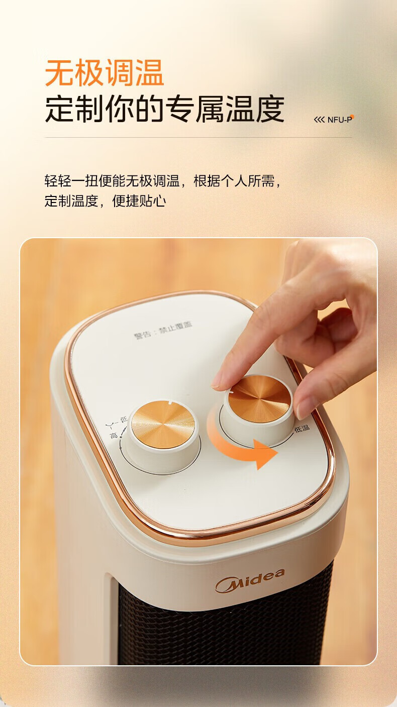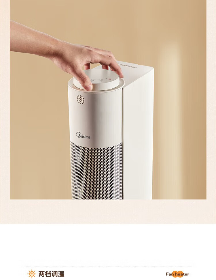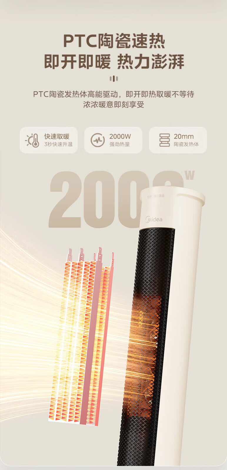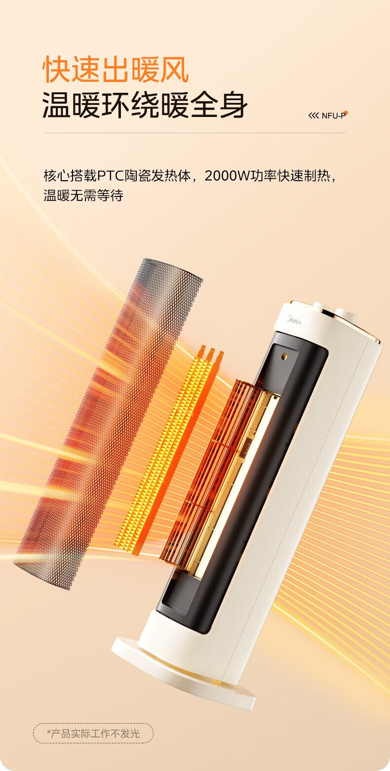 Midea美的取暖器电暖烤火炉暖风机低噪超长3秒速热两档PTC大功率发热体可拆洗滤网摇头 NFU-H米黄