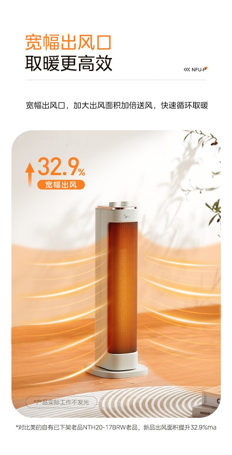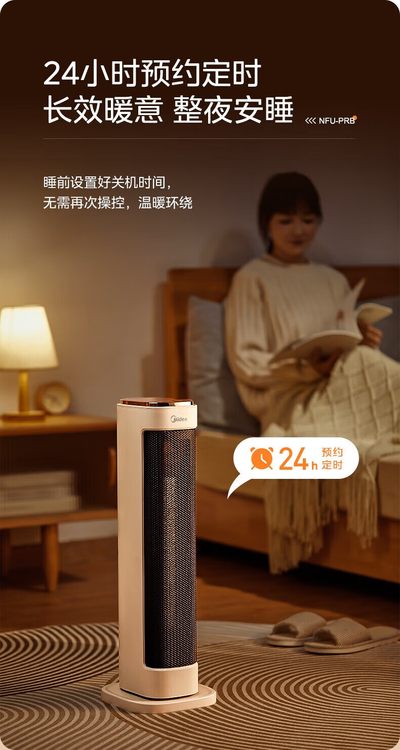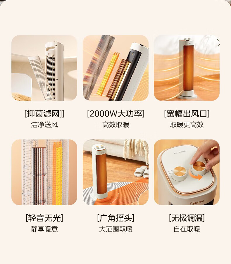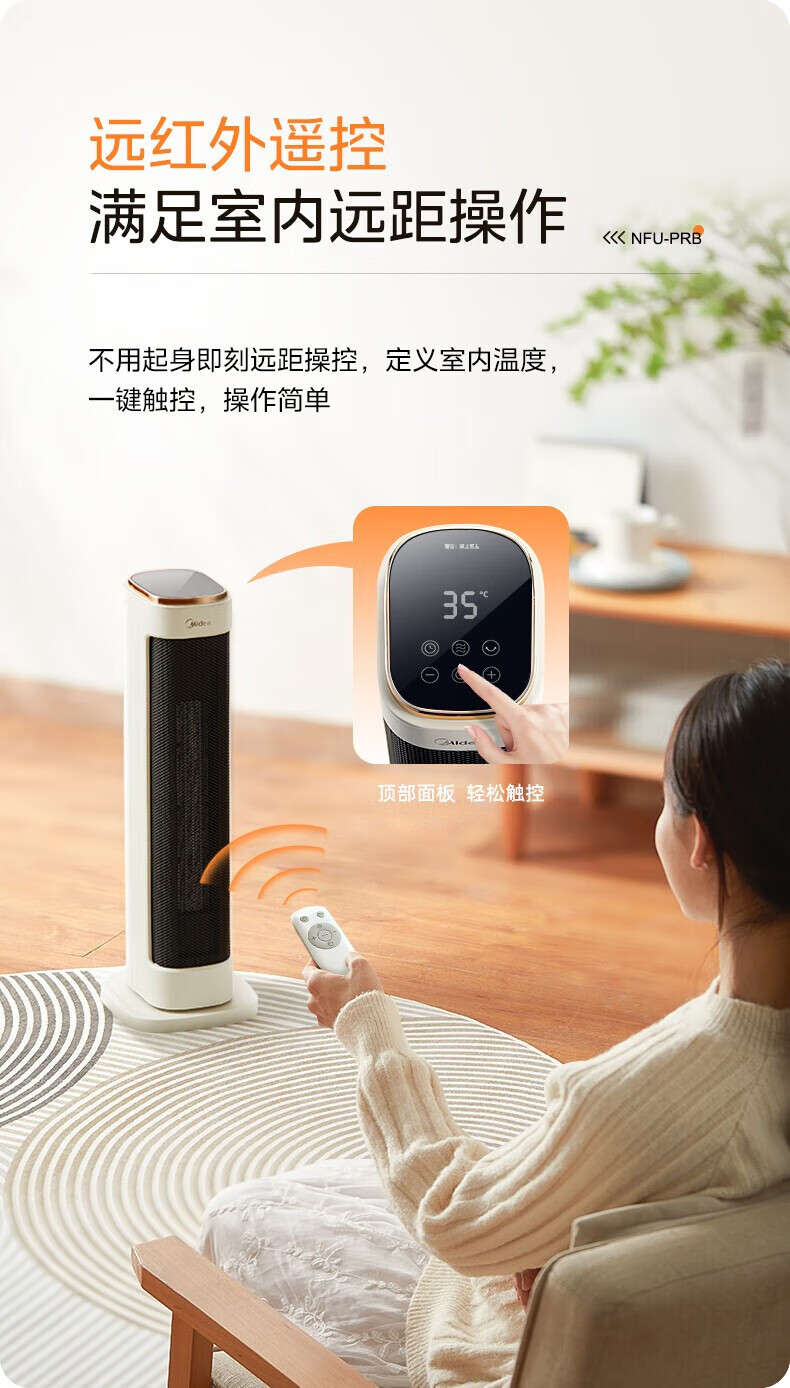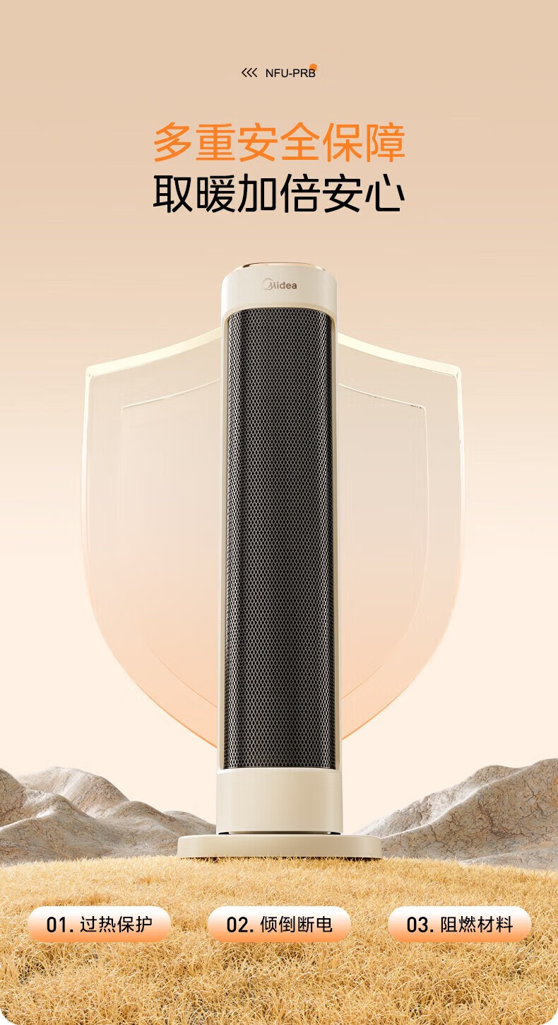 Midea美的取暖器电暖烤火炉暖风机低噪超长3秒速热两档PTC大功率发热体可拆洗滤网摇头 NFU-H米黄