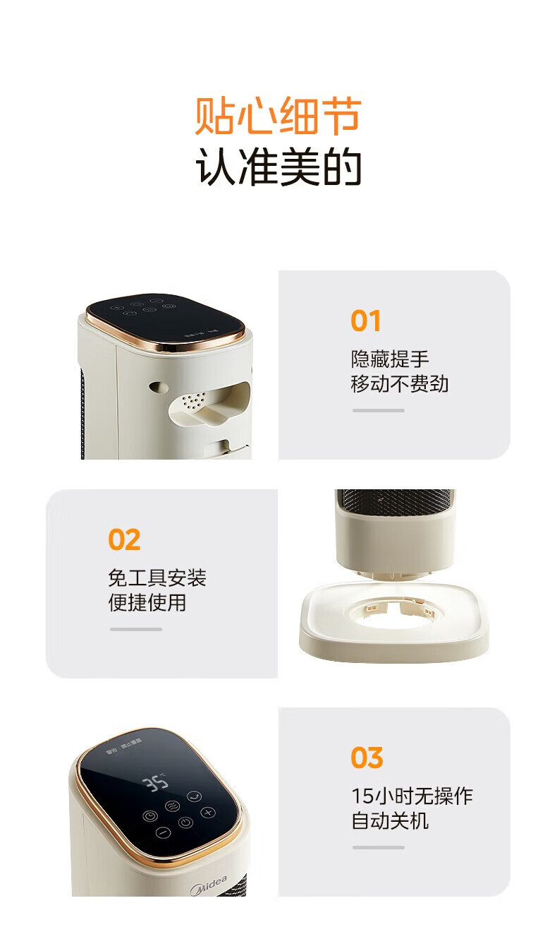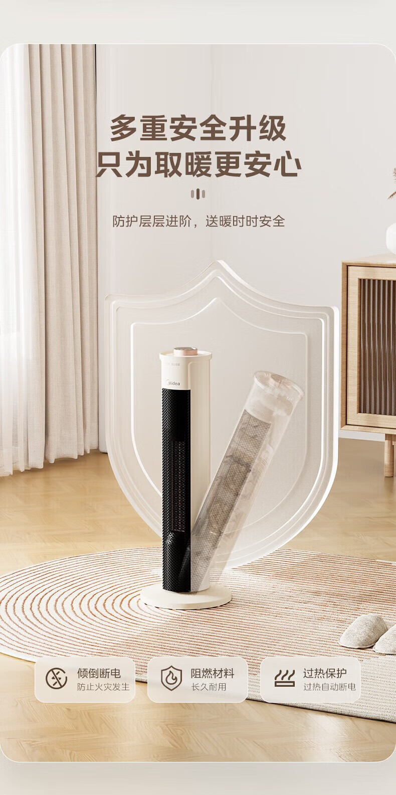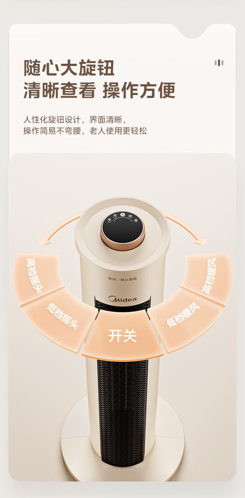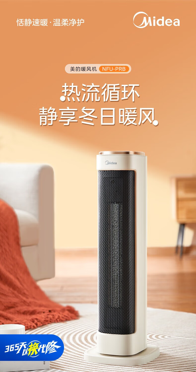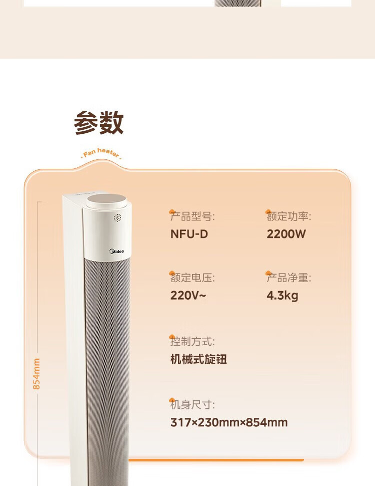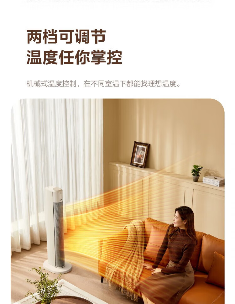 Midea美的取暖器电暖烤火炉暖风机低噪超长3秒速热两档PTC大功率发热体可拆洗滤网摇头 NFU-H米黄