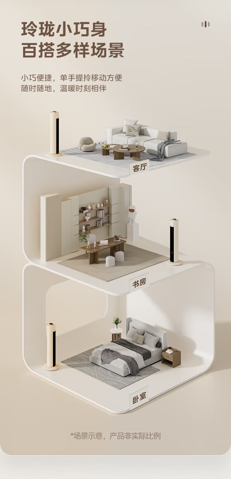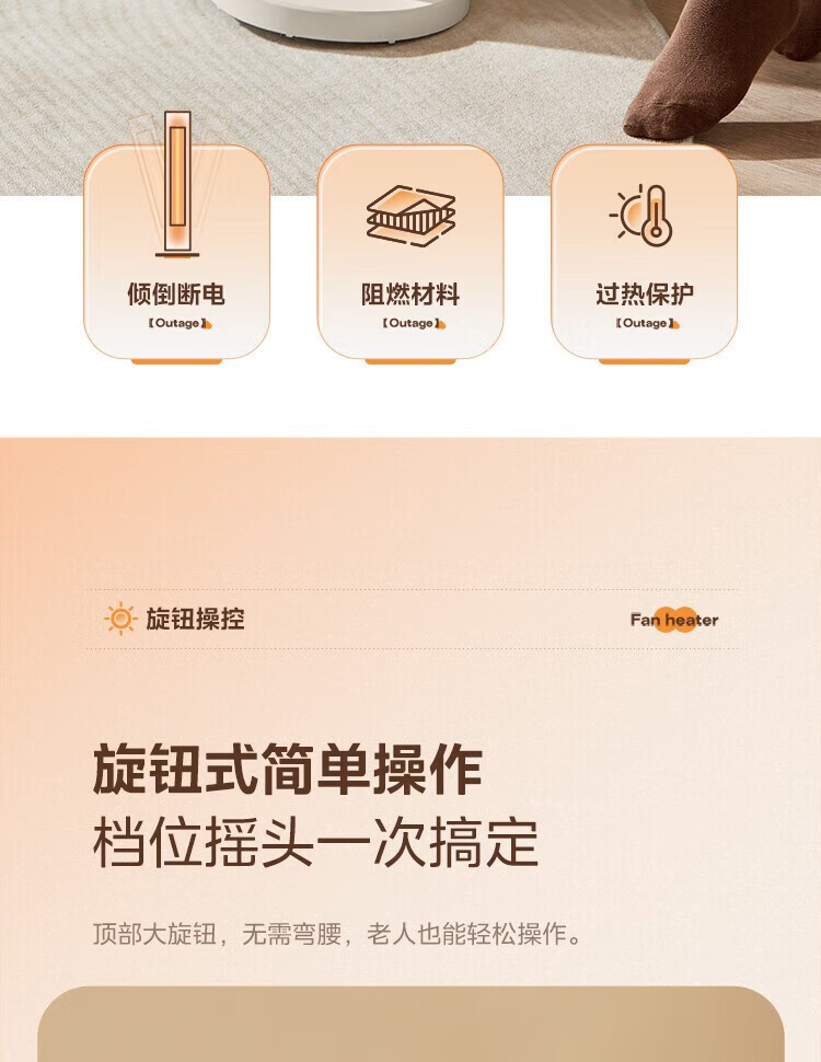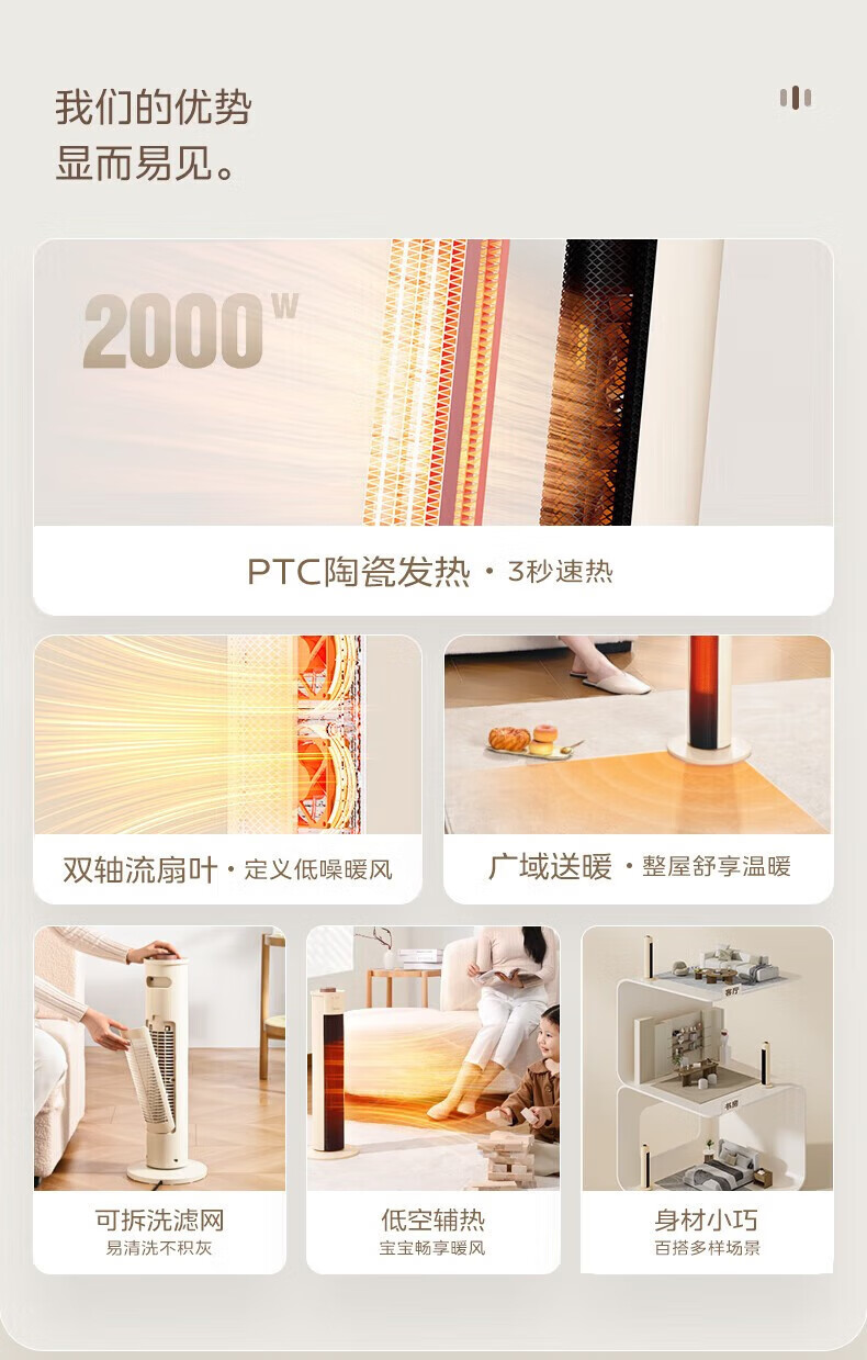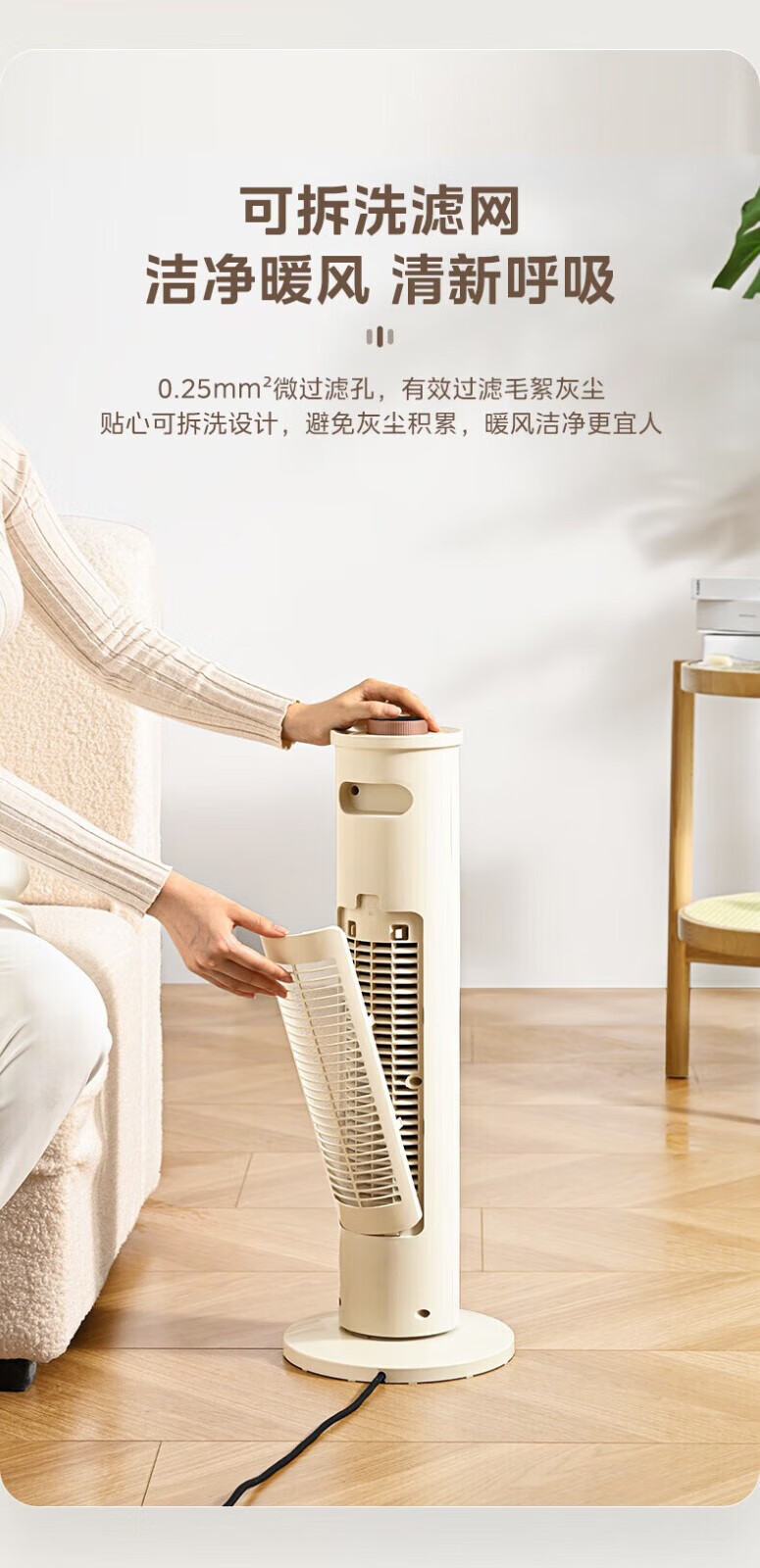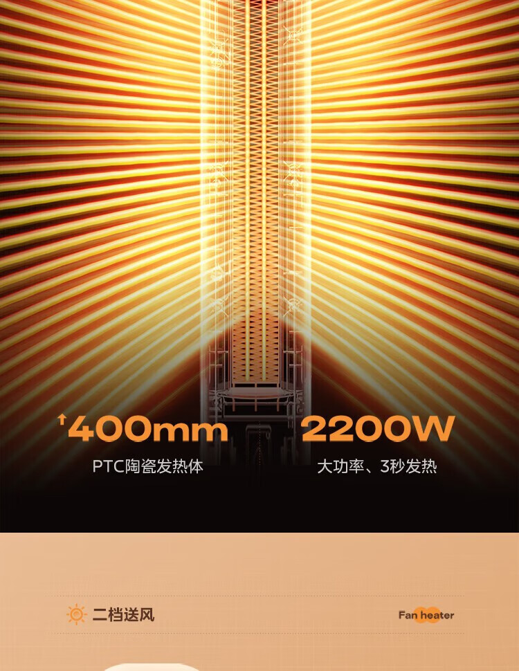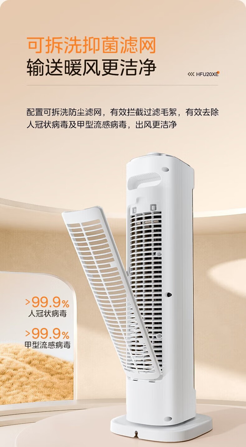 Midea美的取暖器电暖烤火炉暖风机低噪超长3秒速热两档PTC大功率发热体可拆洗滤网摇头 NFU-H米黄