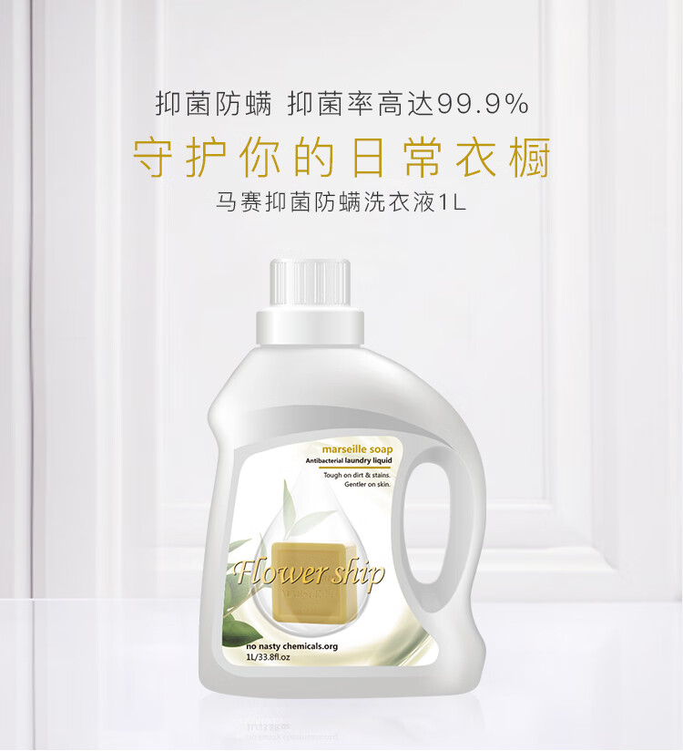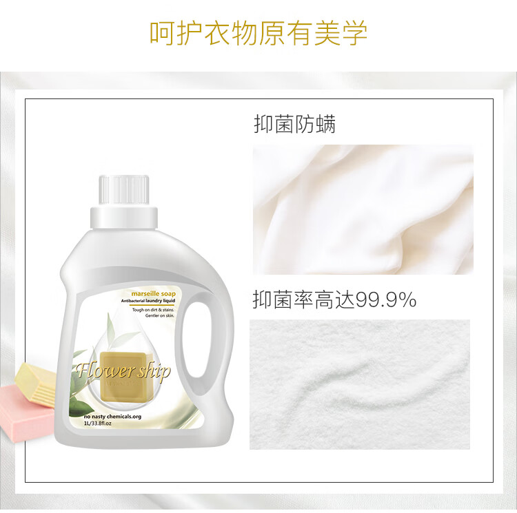 花卉诗(Flower ship)抑菌除螨洗衣液1kg原装进口 深层洁净 去渍去异味 柔顺护色易漂洗