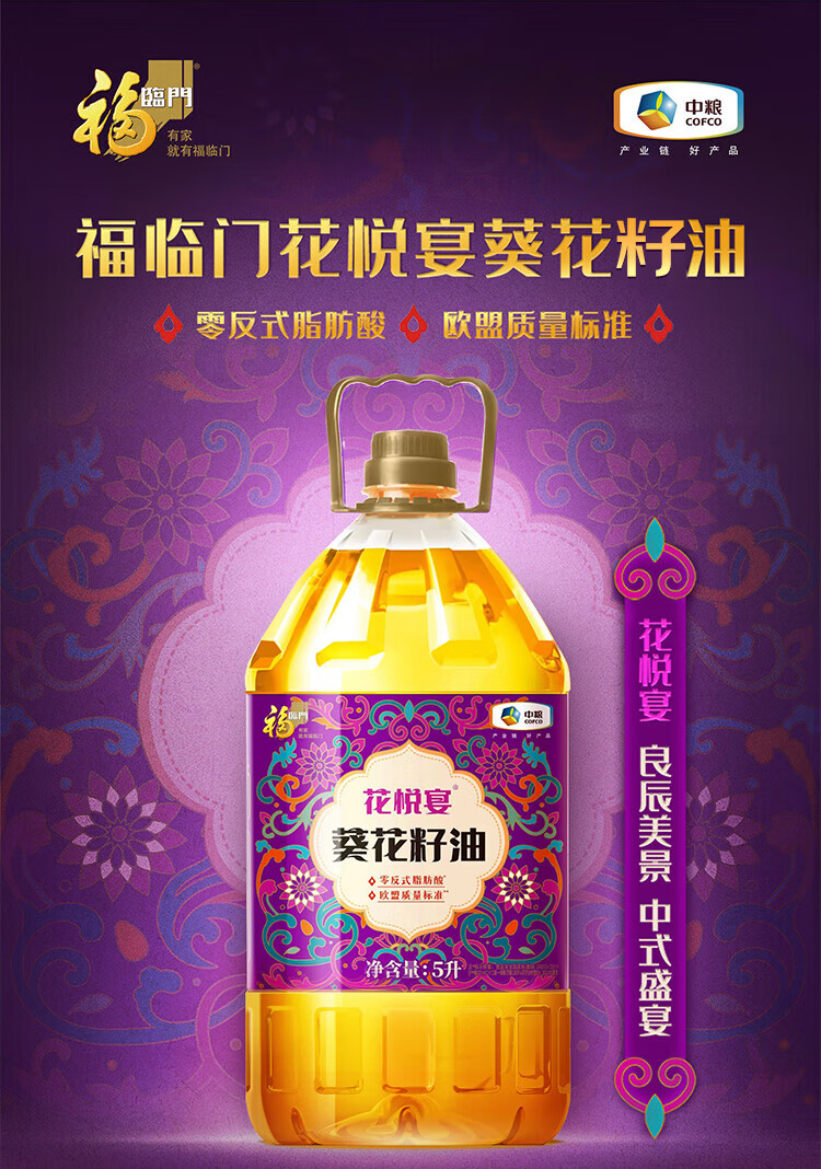 福临门 食用油 花悦宴葵花籽油5L 中粮出品
