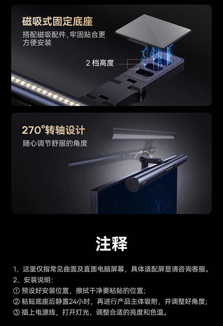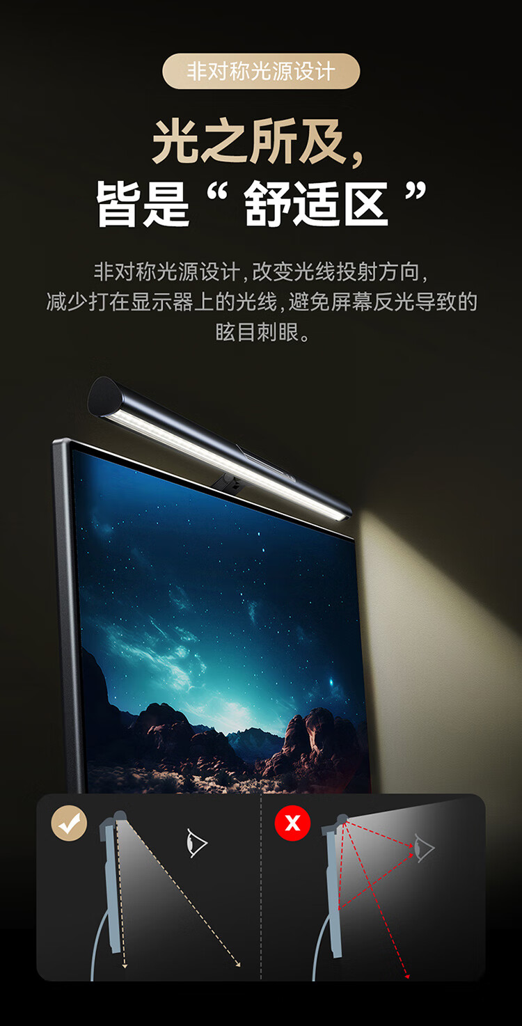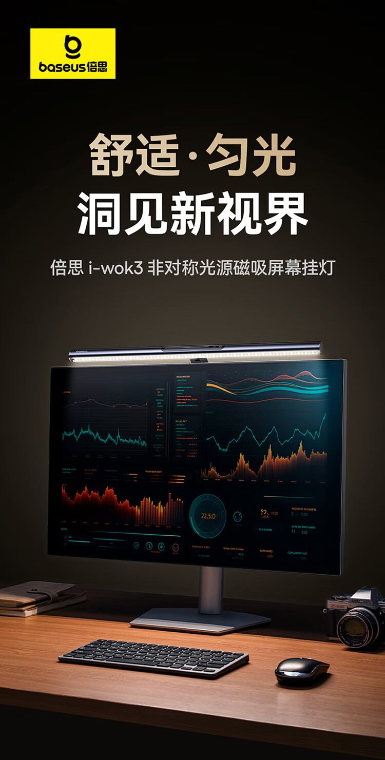 倍思 显示器屏幕挂灯 电脑电竞氛围背部磁吸夜灯学生宿舍神器酷毙灯非对称光源阅读灯触控条无极调节