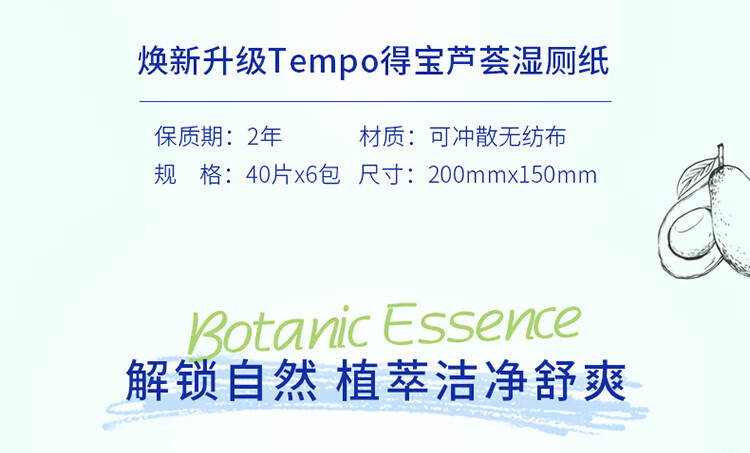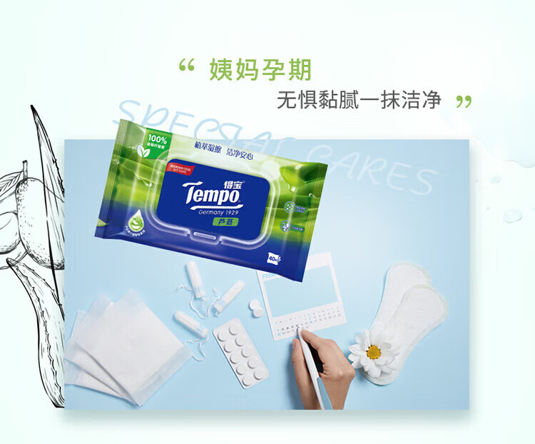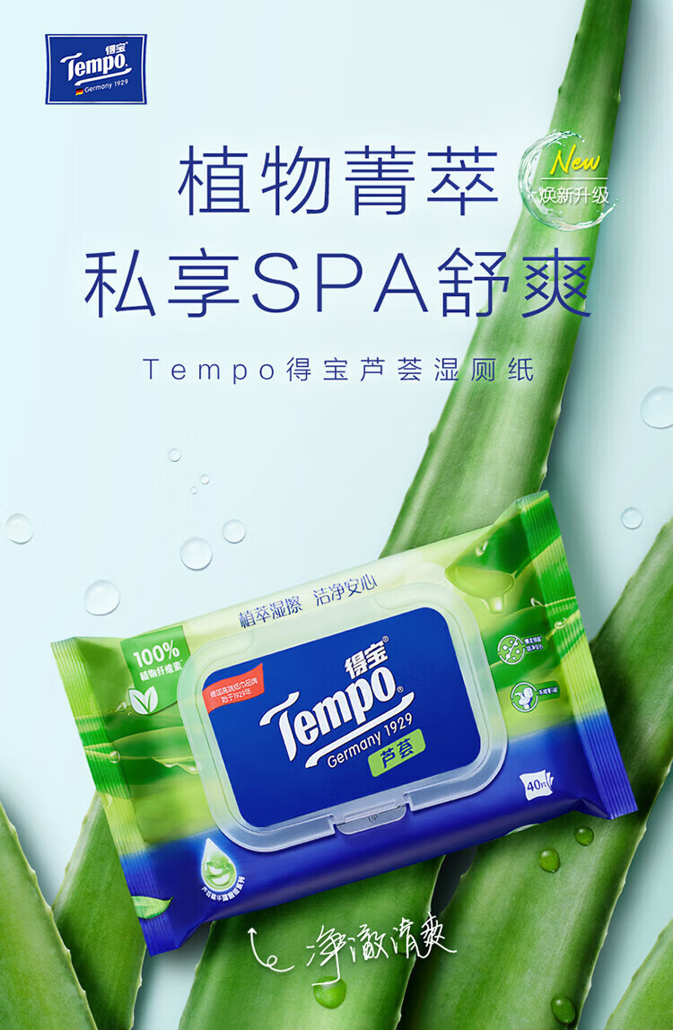 得宝 湿厕纸温和不刺激胶盖装 芦荟湿纸巾 便携小包40片5包
