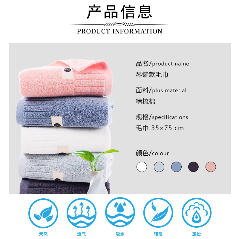 汉司家纺 35*75cm 纯棉琴键毛巾(计价单位:块) 多色