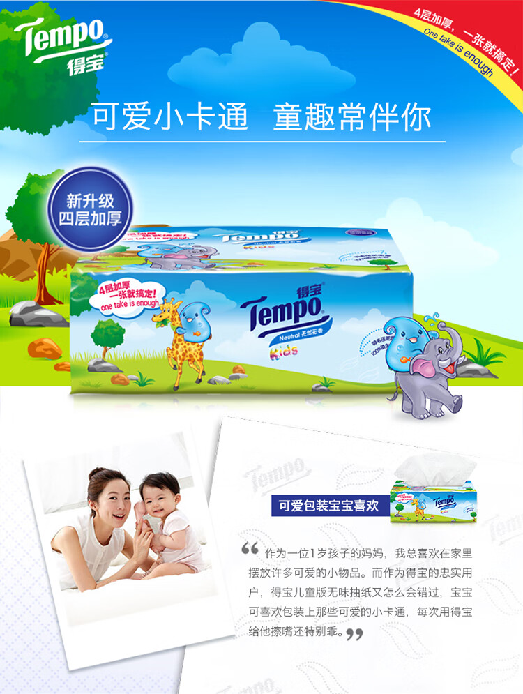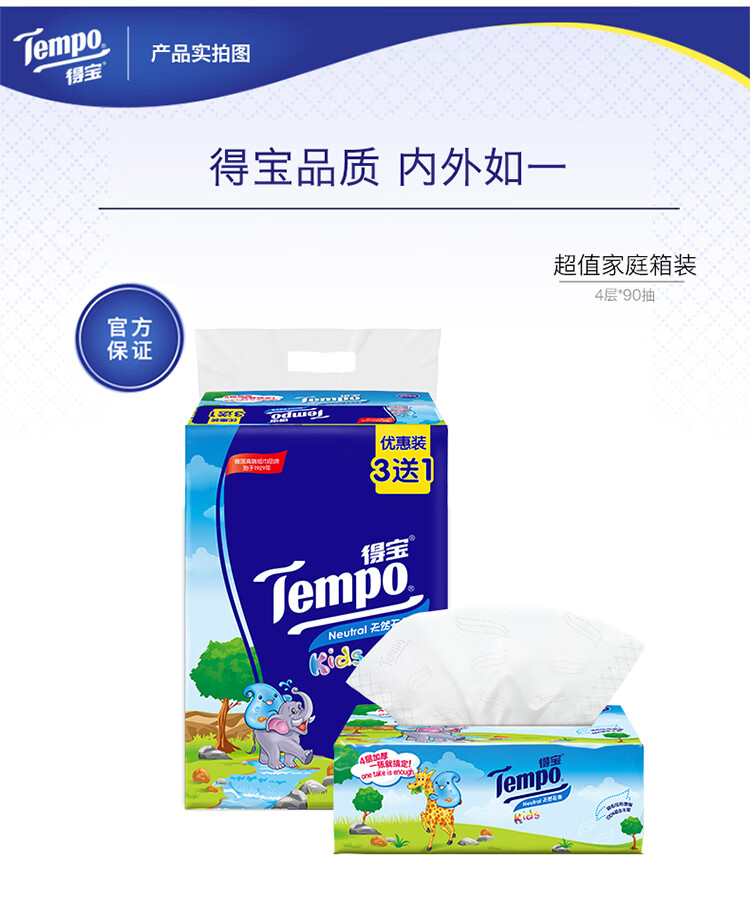 得宝 抽纸 儿童版4层90抽*...