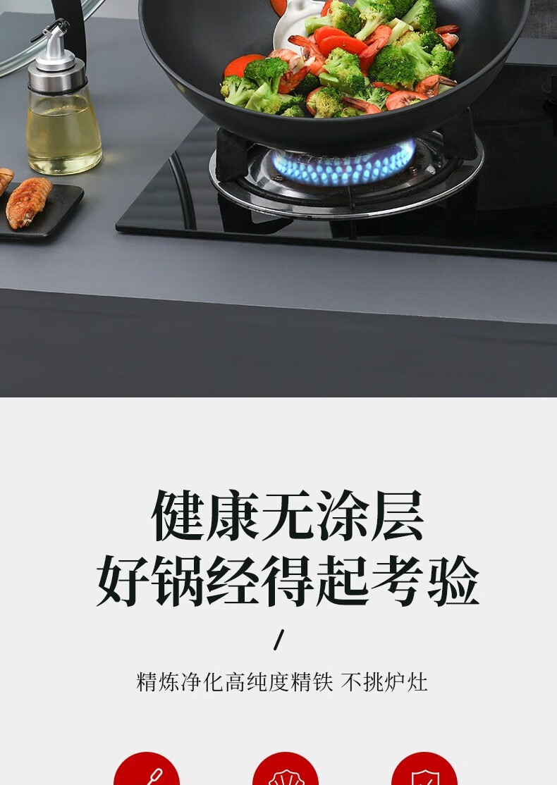 张小泉炒锅铁锅家用锅无涂层爆炒...