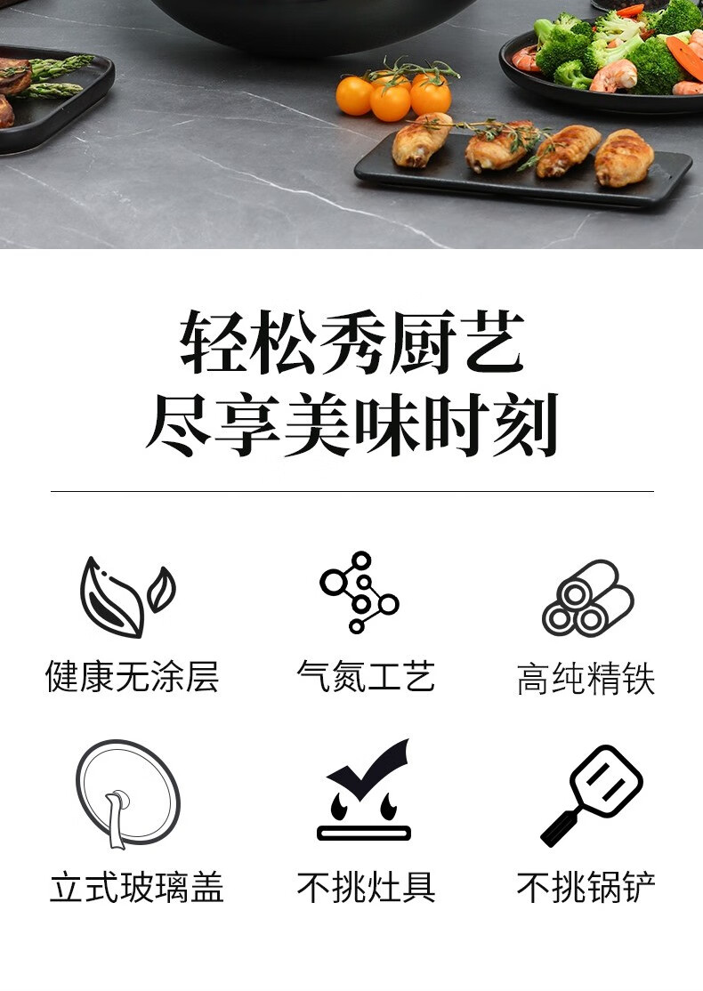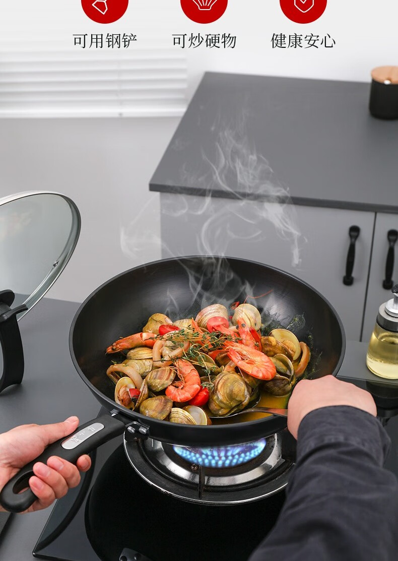 张小泉炒锅铁锅家用锅无涂层爆炒精 万家简品精铁炒锅C30330100 32cm