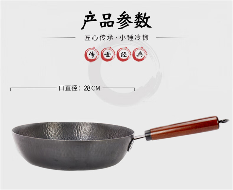 艾逸瑶选罗斯维纳锻打平底煎炒锅28CM CJ-21008