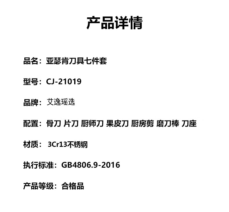 艾逸瑶选亚瑟肯刀具七件套 CJ...