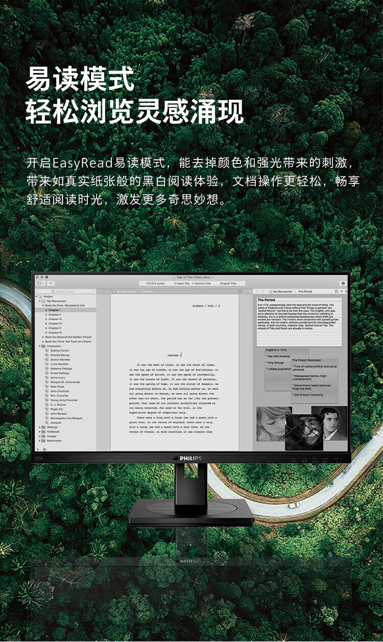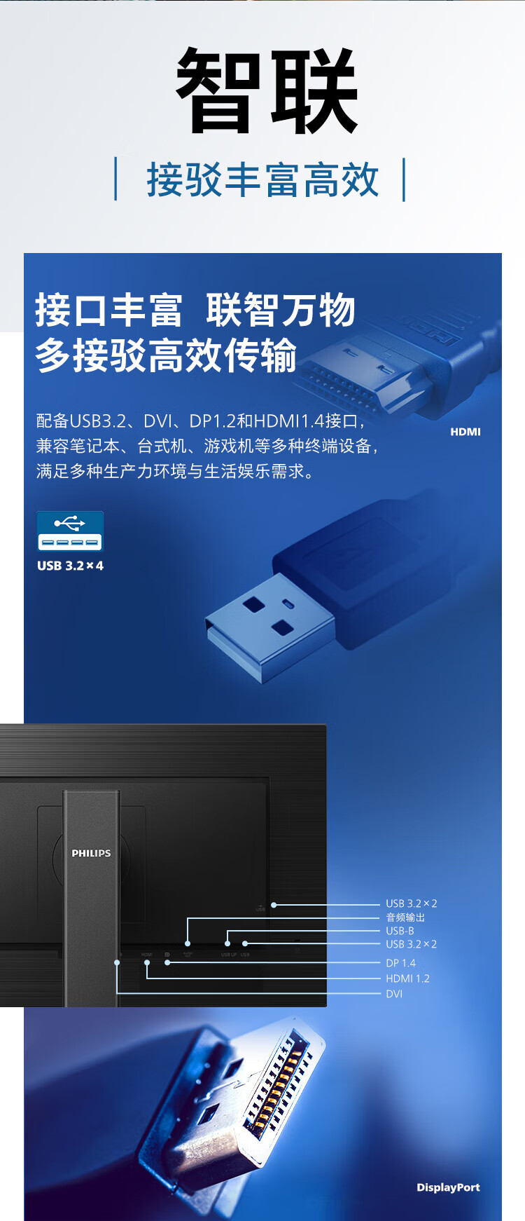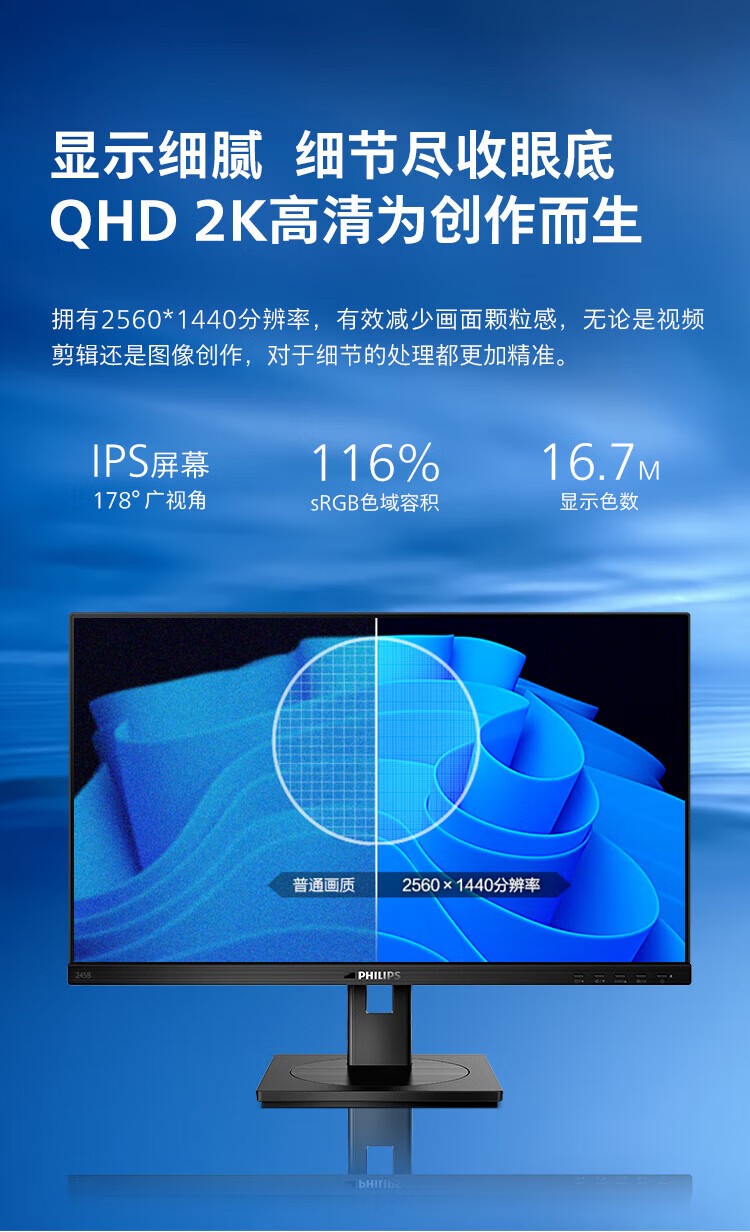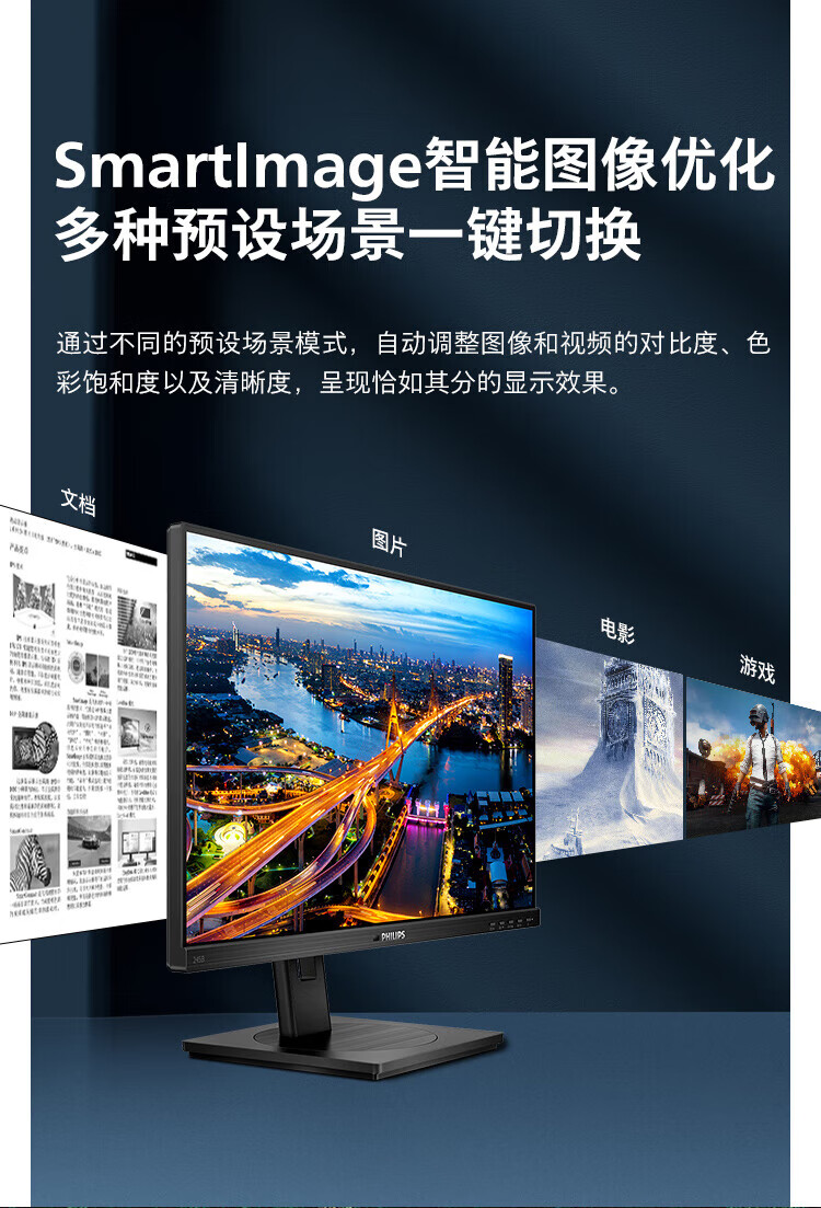 飞利浦飞利浦23.8英寸 办公显示器高清 IPS 75Hz内置音箱升降旋转智能双芯电脑显示屏 245B1