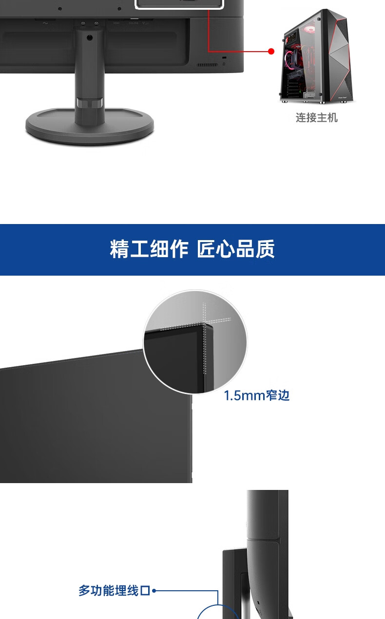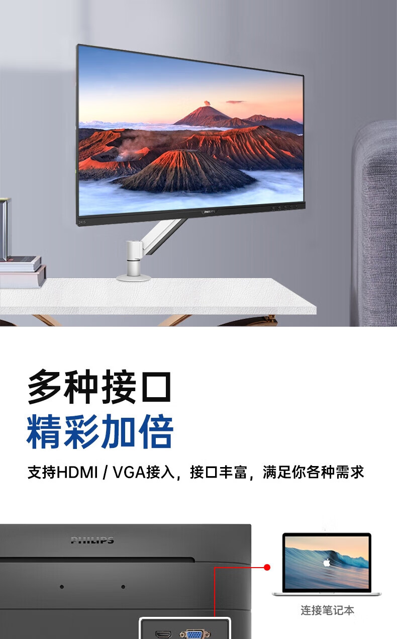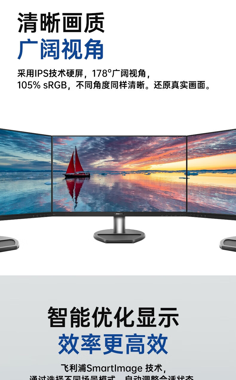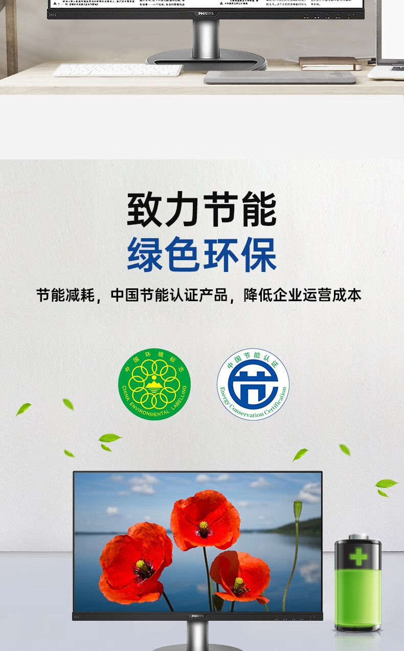 飞利浦(PHILIPS)23.8英寸电脑显示器IPS高清低蓝光不闪屏办公显示屏 241S8QHSB 企业业务