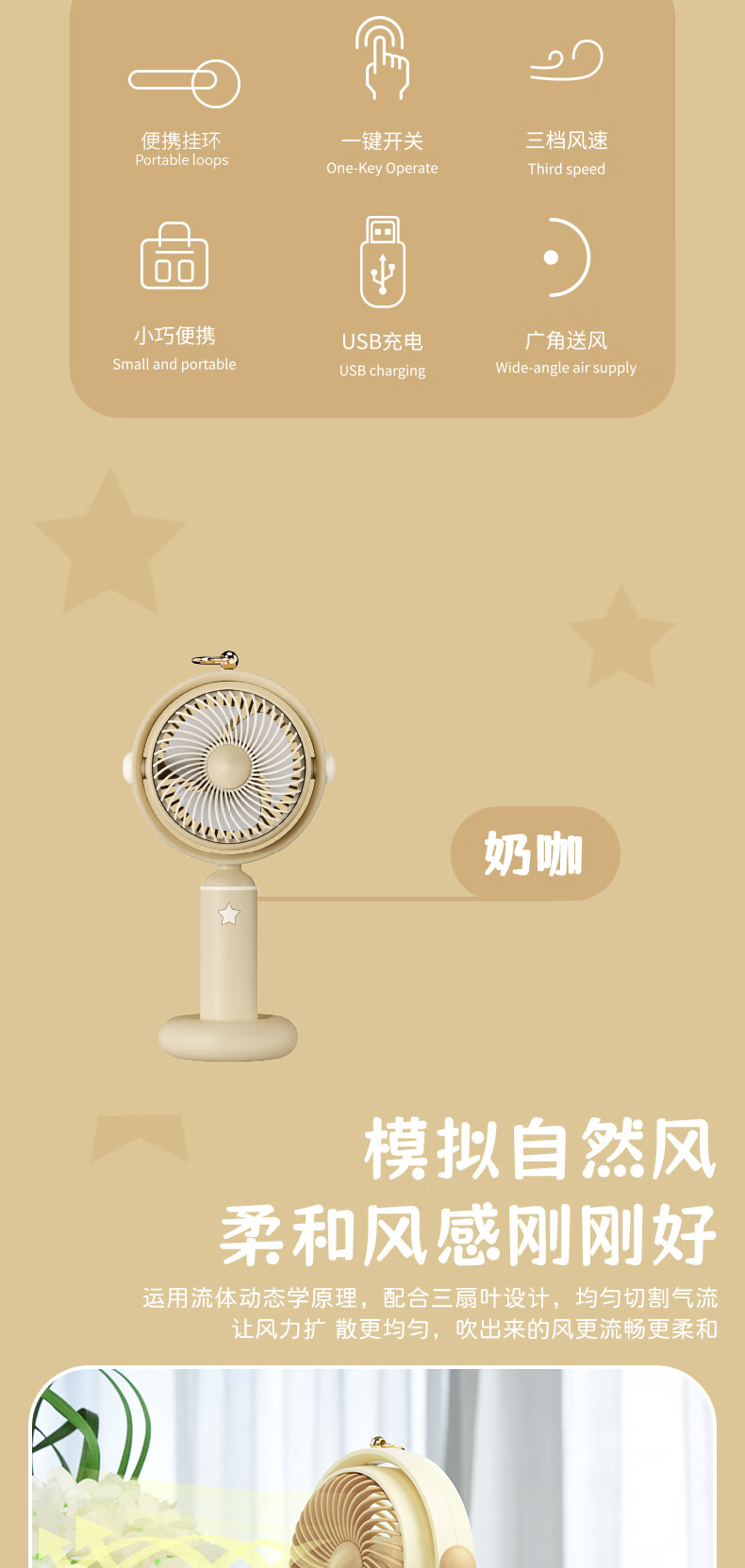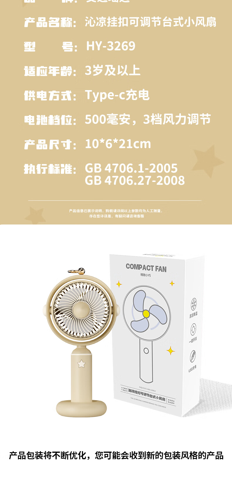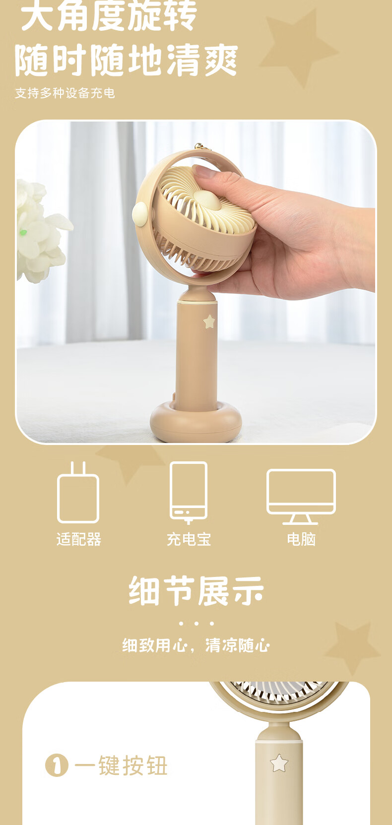 艾逸瑶选多功能手持风扇配底座可调角度 HY-3269