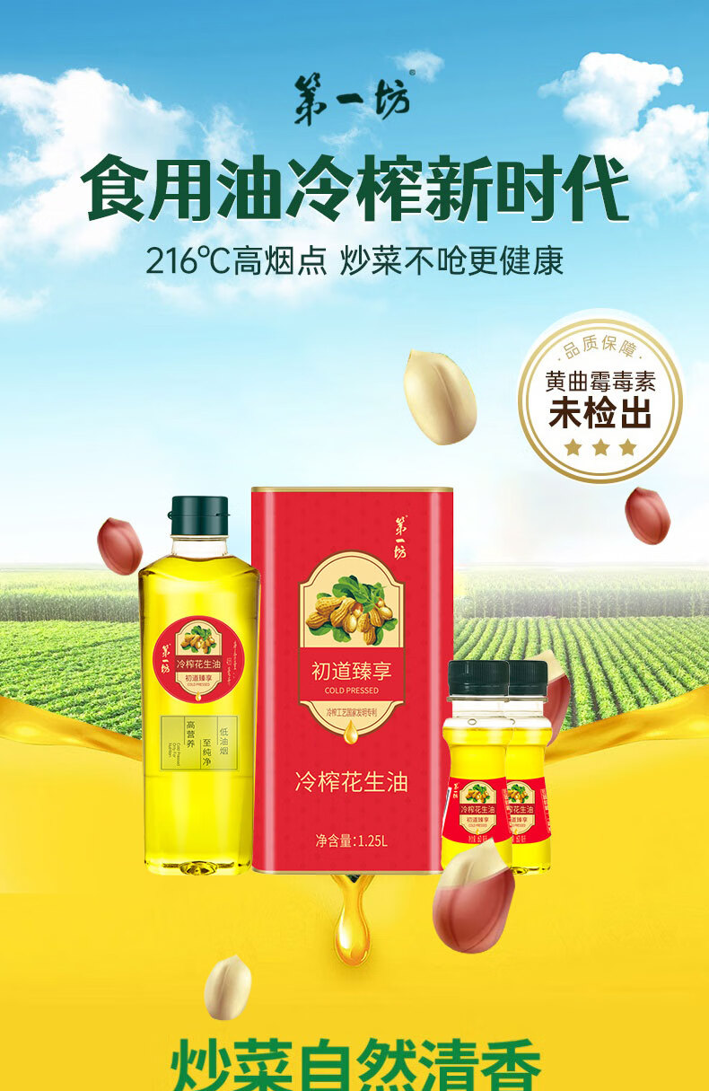第一坊 初道臻享冷榨花生油1825ml套装(1.25L+455ml+60ml*2)
