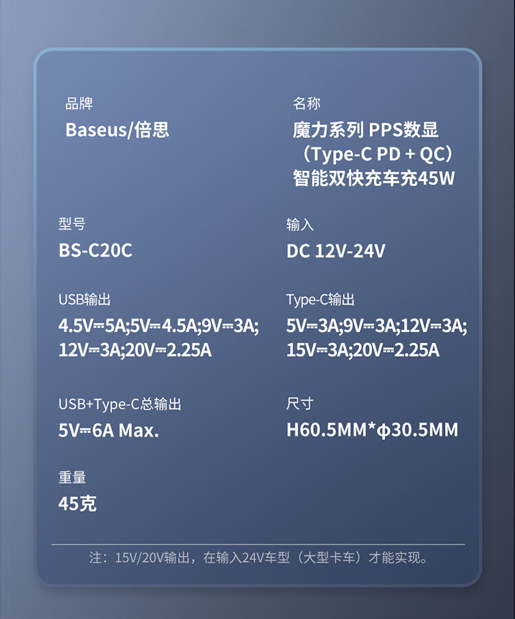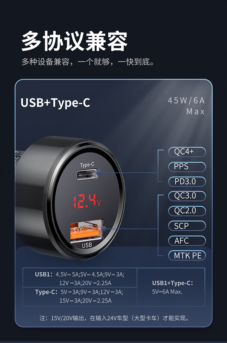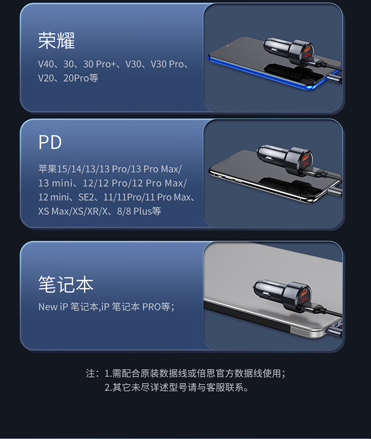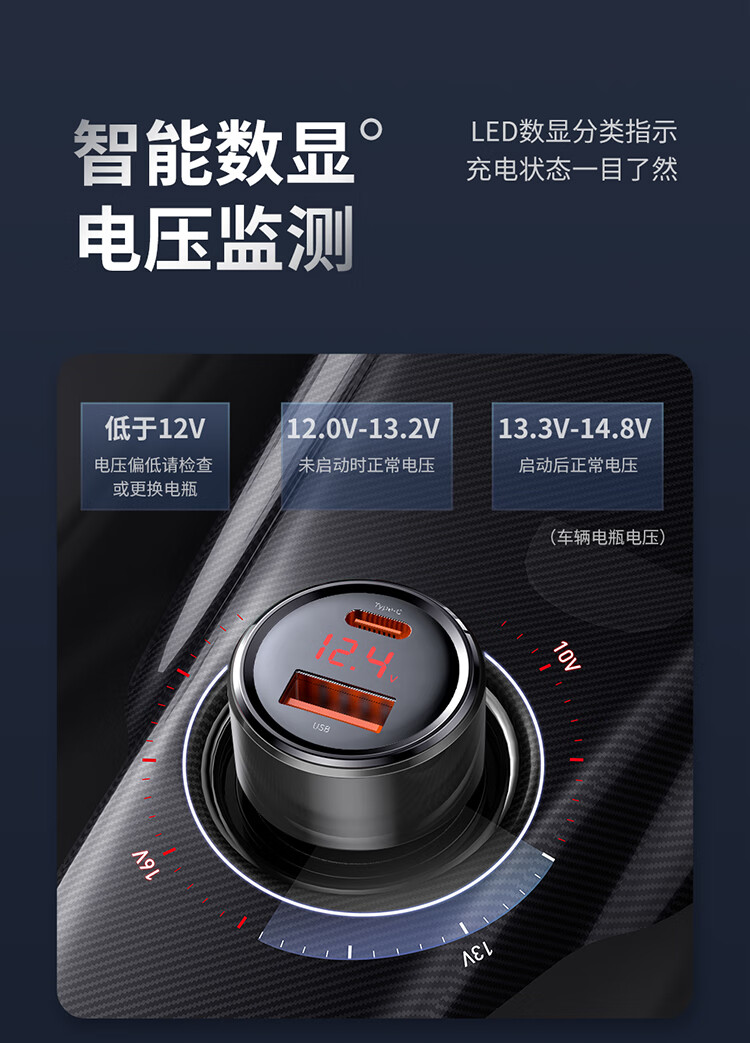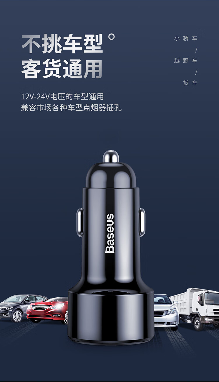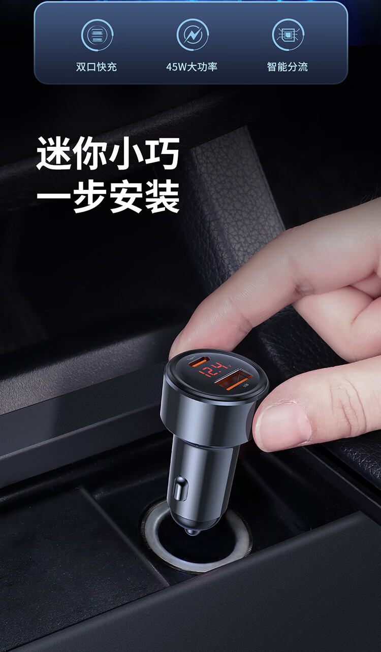 倍思(Baseus)车载充电器点烟器超级快充单口45W一拖二苹果16华为小米转换器