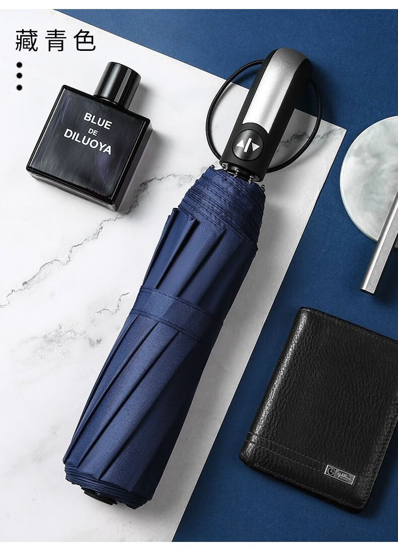雨恋情YLQ-01三折一键自动开收晴雨两用伞藏青色