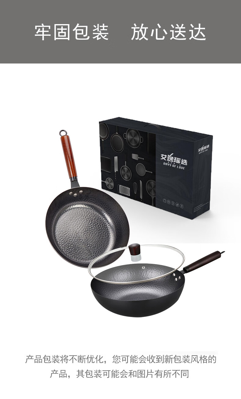 艾逸瑶选吉纳维亚锻打锅炒锅(配盖)煎锅两件套CJ-21007-2