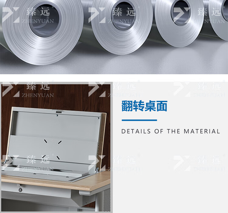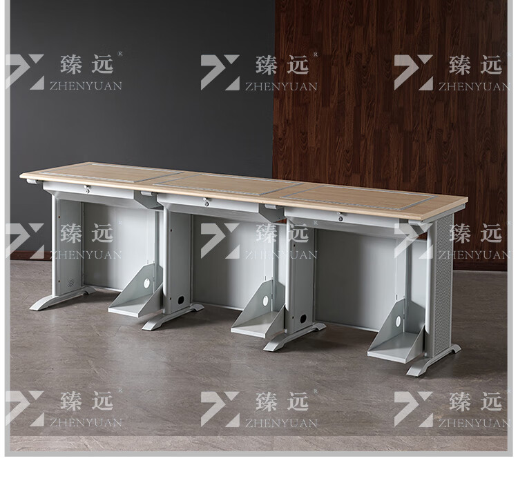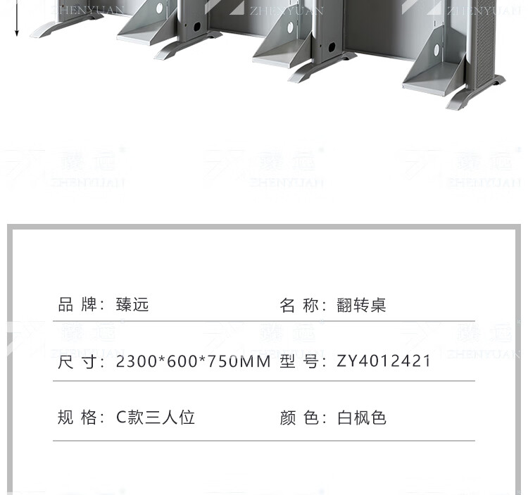 臻远ZY4012421隐藏式翻转电脑桌培训桌办公桌C款三人位