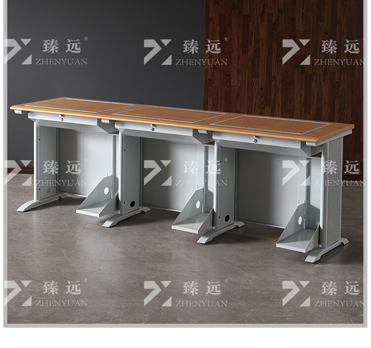 臻远ZY4012427隐藏式翻转电脑桌培训桌办公桌C款三人位