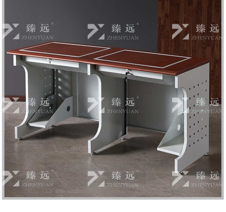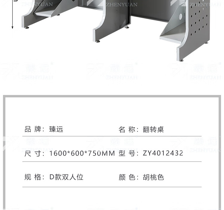 臻远ZY4012432隐藏式翻转电脑桌培训桌办公桌D款双人位