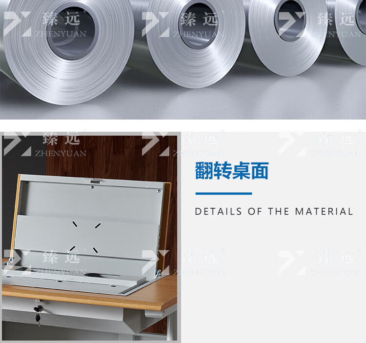 臻远ZY4012425隐藏式翻转电脑桌培训桌办公桌C款单人位