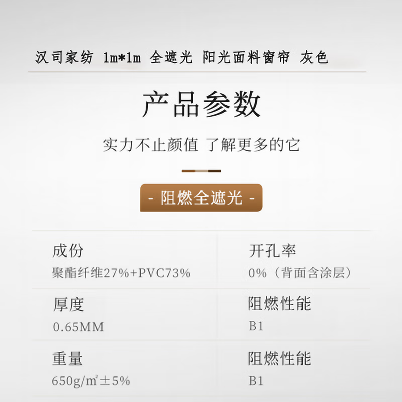 汉司家纺1m*1m全遮光阳光面...