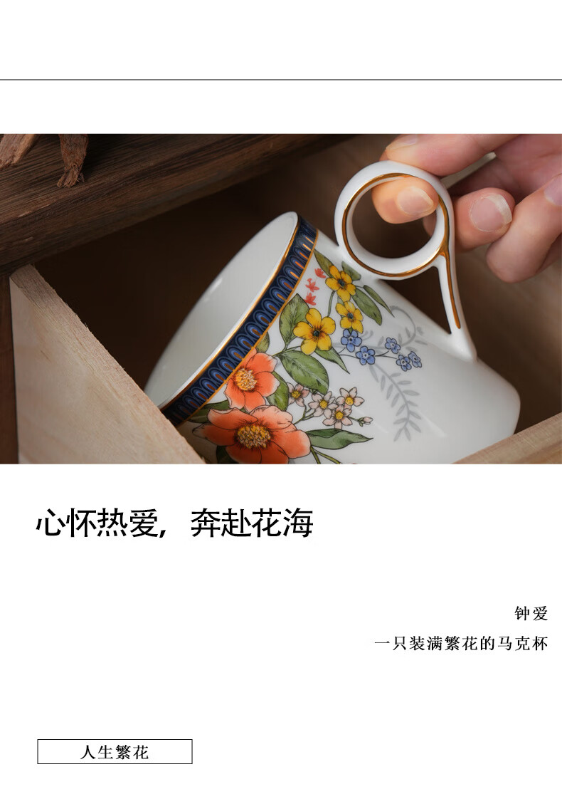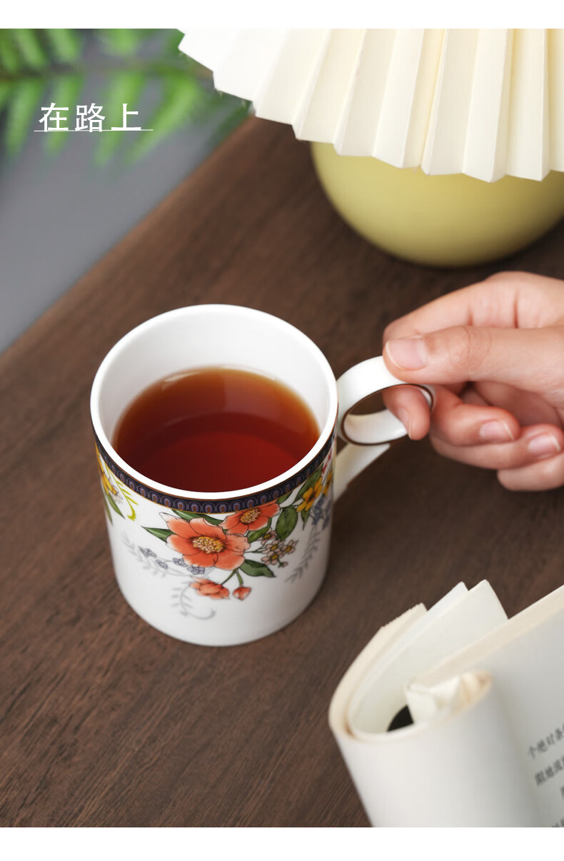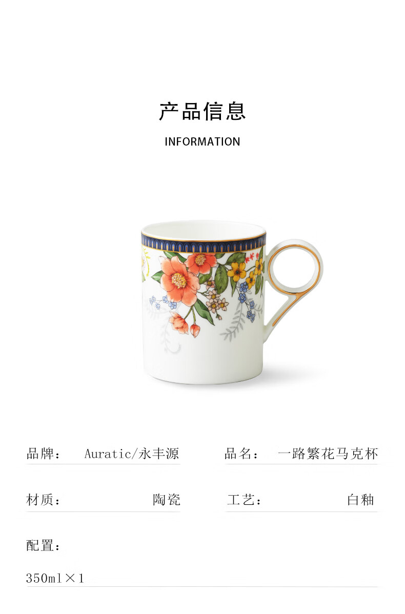 永丰源(auratic)一路繁花 350ml陶瓷中式马克杯会议杯水杯 礼盒包装