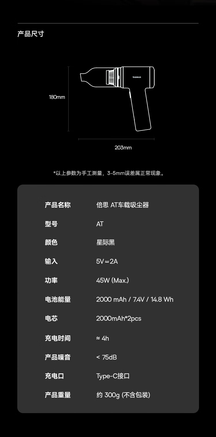 倍思(Baseus)车载吸尘器大吸力无线手持家用桌面汽车便携多功能适配小米su7