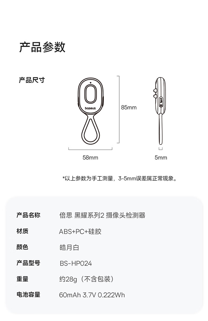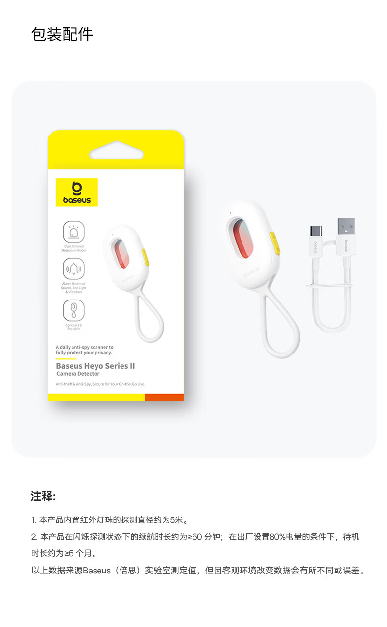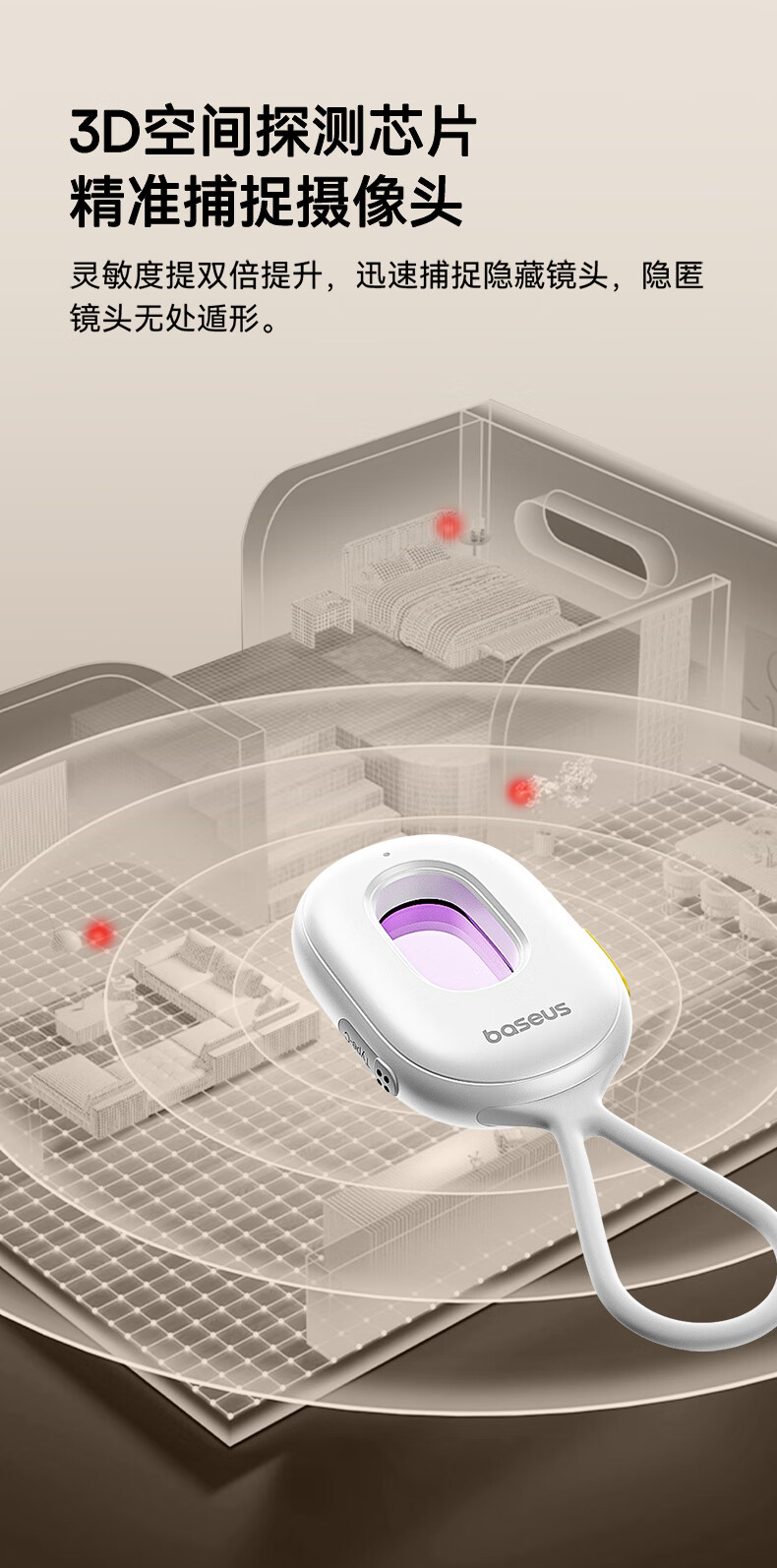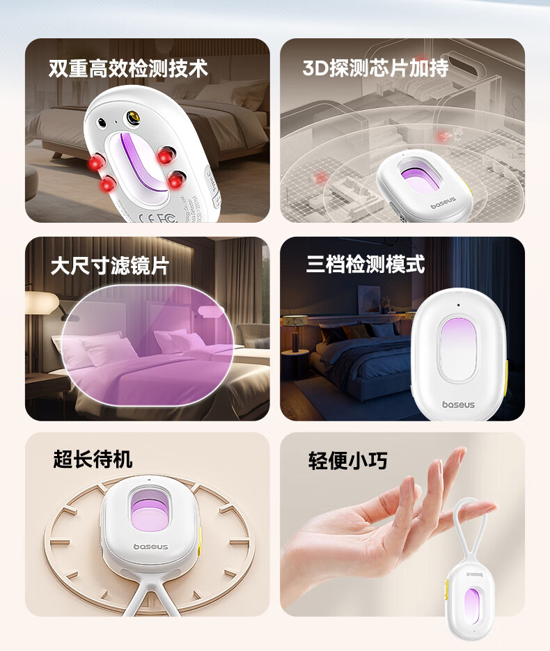 倍思(Baseus)酒店摄像头探测器 信号探测仪可充电挂门窗小型红外线扫描检测仪防监控便携适用宾馆酒店民宿出游