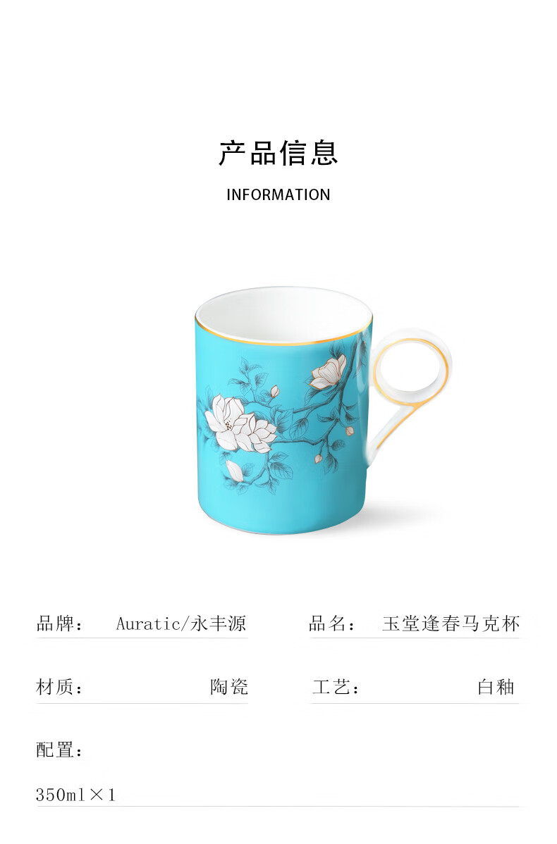 永丰源(auratic) 国家补贴 玉堂逢春 350ml陶瓷中式马克杯会议杯水杯 礼盒包装