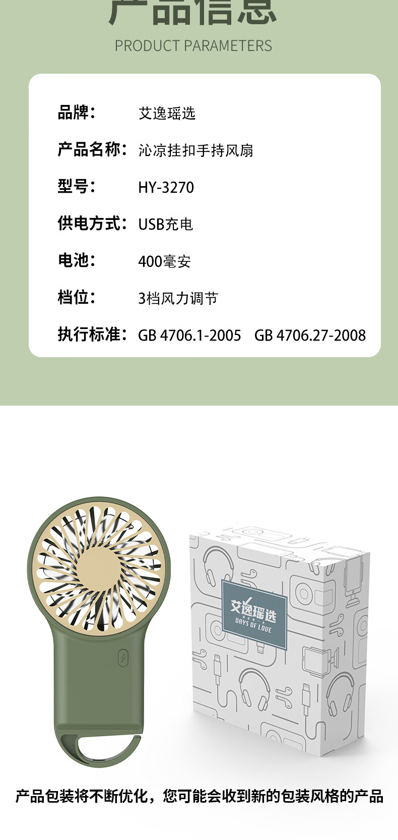 艾逸瑶选挂扣桌面多用手持风扇 HY-3270 绿色