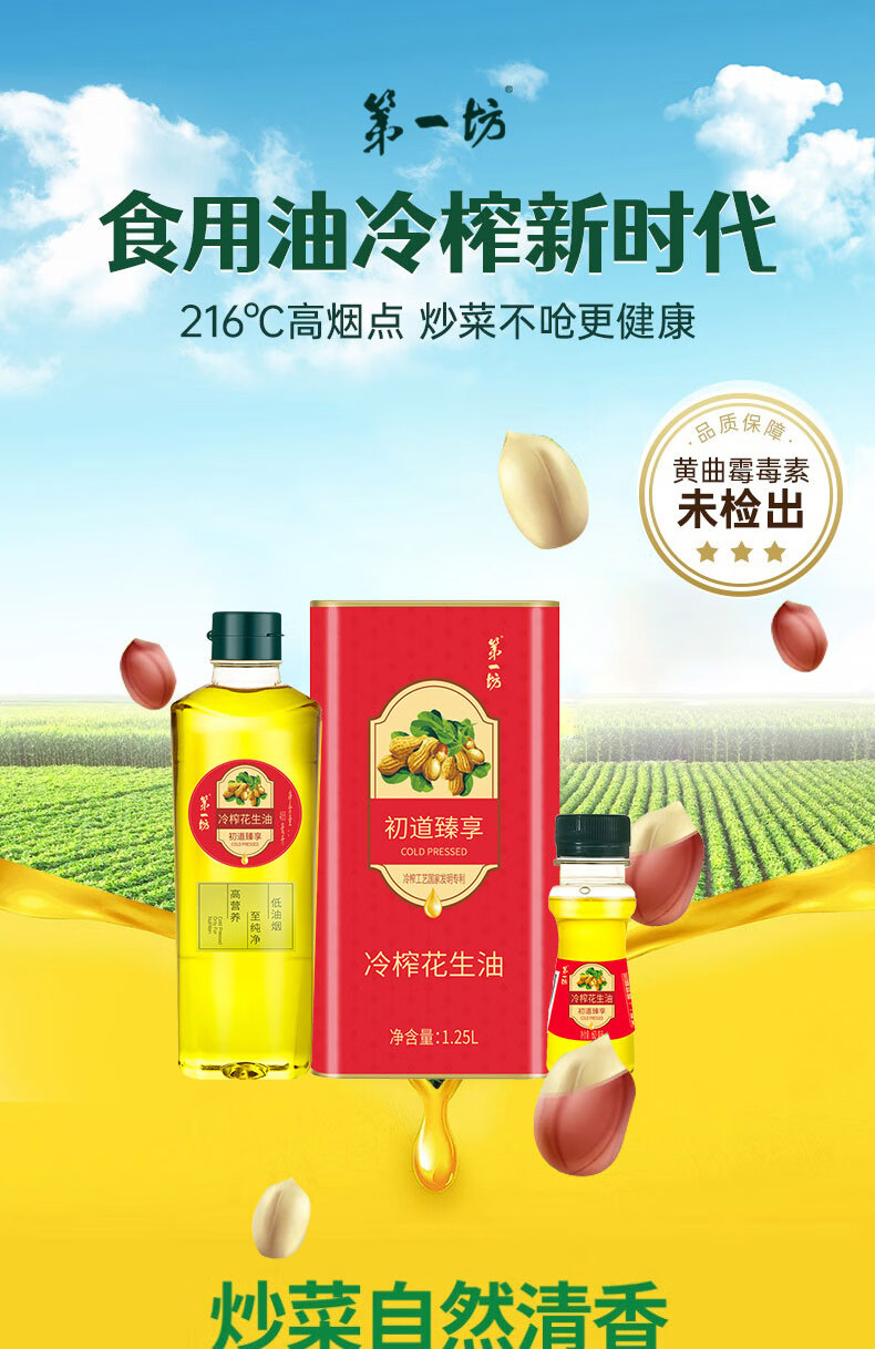 第一坊 初道臻享冷榨花生油1765ml套装(1.25L+455ml+60ml)