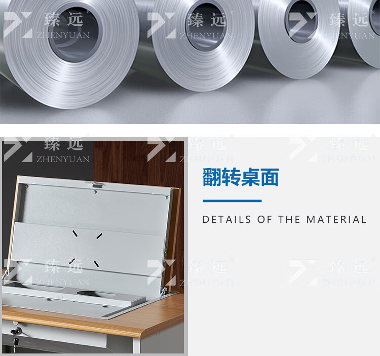 臻远ZY4012434隐藏式翻转电脑桌培训桌办公桌D款单人位
