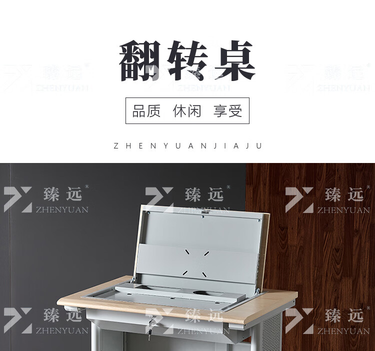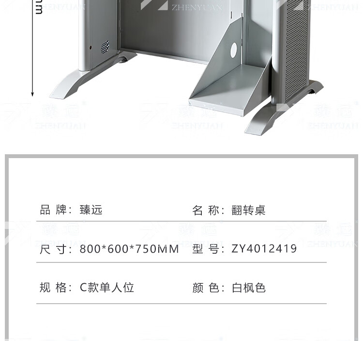 臻远ZY4012419隐藏式翻转电脑桌培训桌办公桌C款单人位