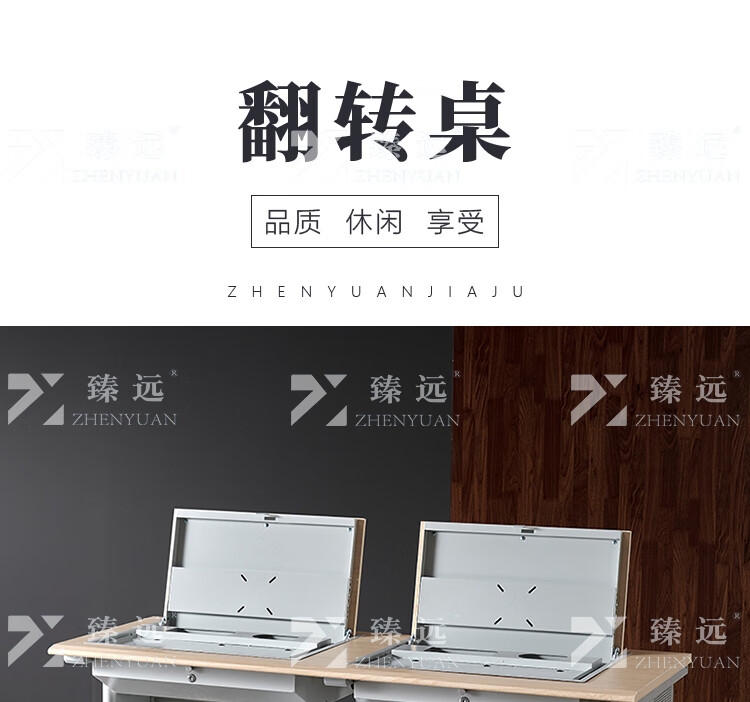 臻远ZY4012420隐藏式翻转电脑桌培训桌办公桌C款双人位