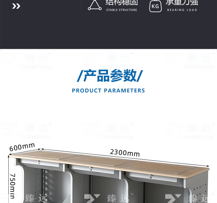 臻远ZY4012430隐藏式翻转电脑桌培训桌办公桌D款三人位