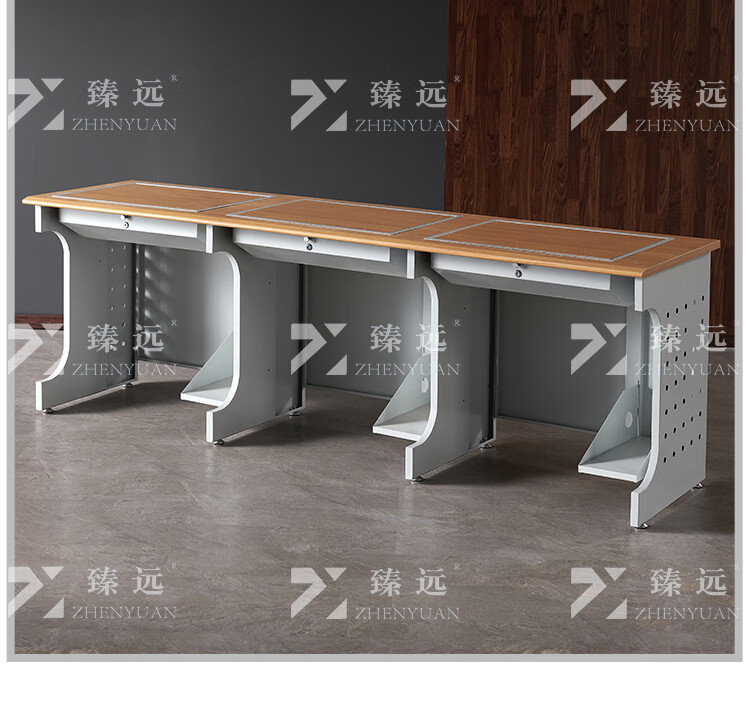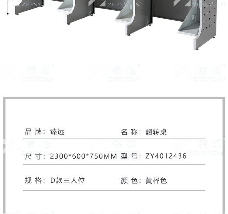 臻远ZY4012436隐藏式翻转电脑桌培训桌办公桌D款三人位