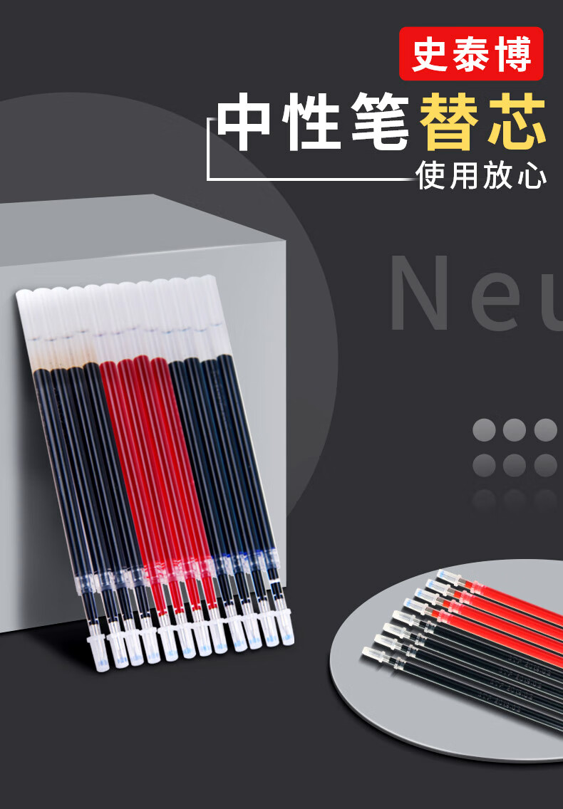 史泰博 0.5mm按动中性笔替芯直杆中性笔替芯水笔笔芯 整盒发 GP1005R 按动替芯 蓝色 30支/盒