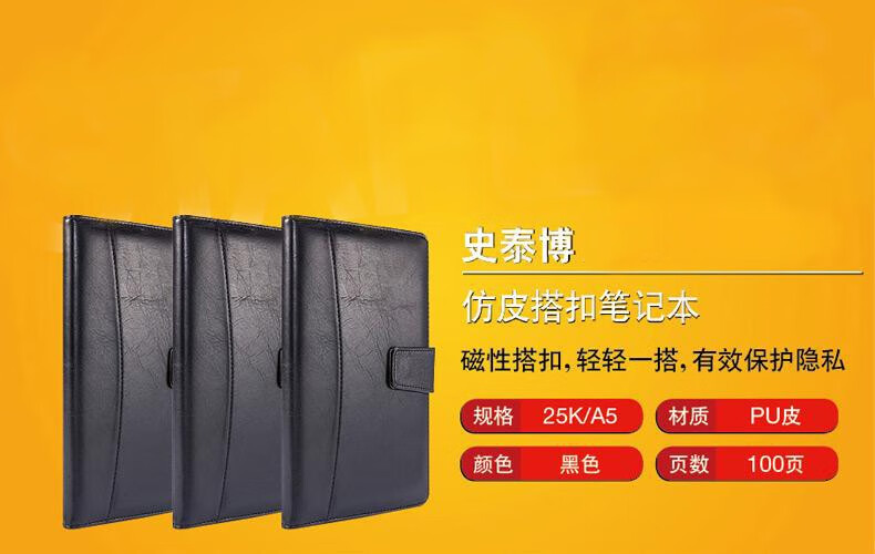 史泰博 仿皮搭扣笔记本 办公专用记事本会议记录本子日记本 25K 80页 黑色 黑色