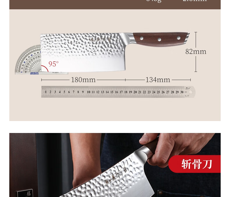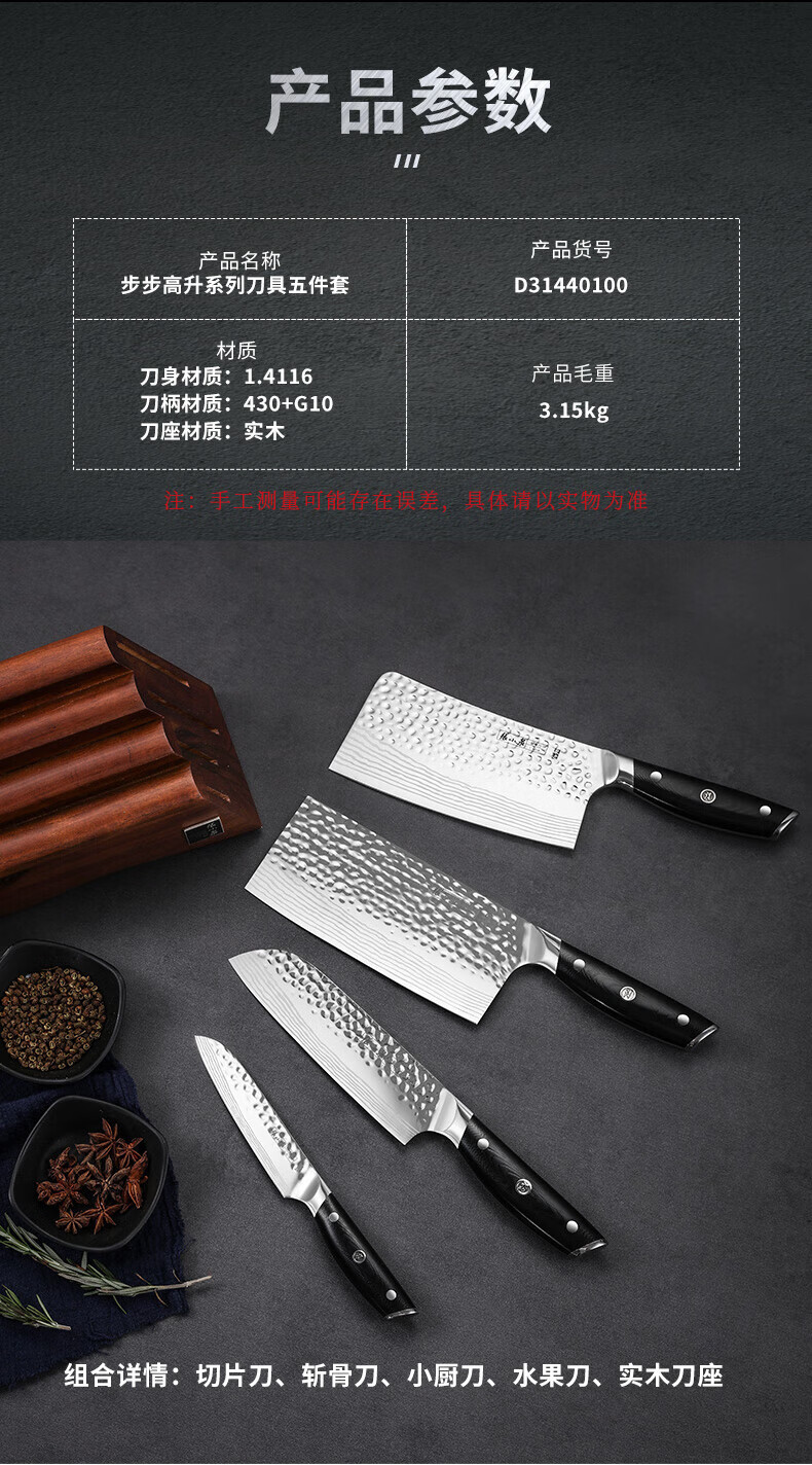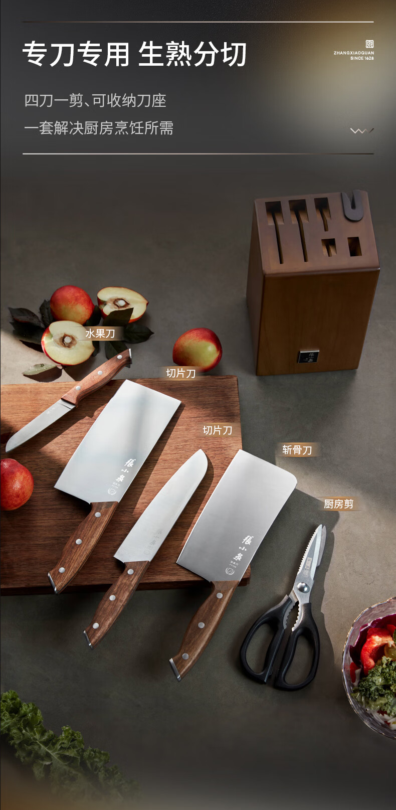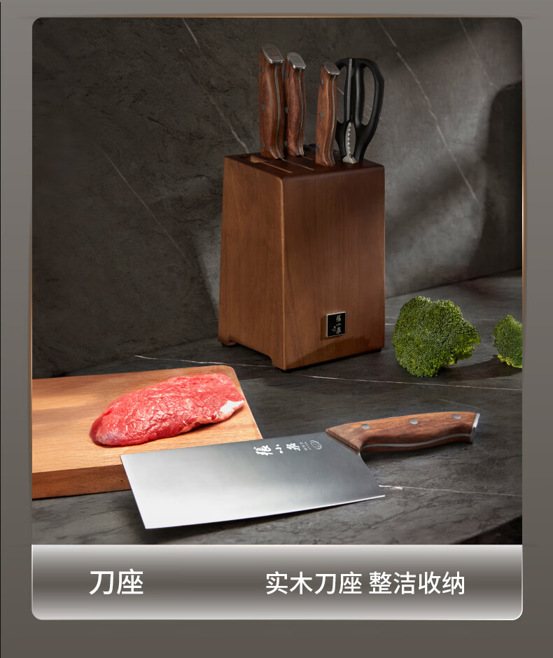 张小泉不锈钢刀具菜刀套装家用菜刀厨房套刀锤点防粘切菜刀斩骨刀实木柄 锋悦六件套 6件套