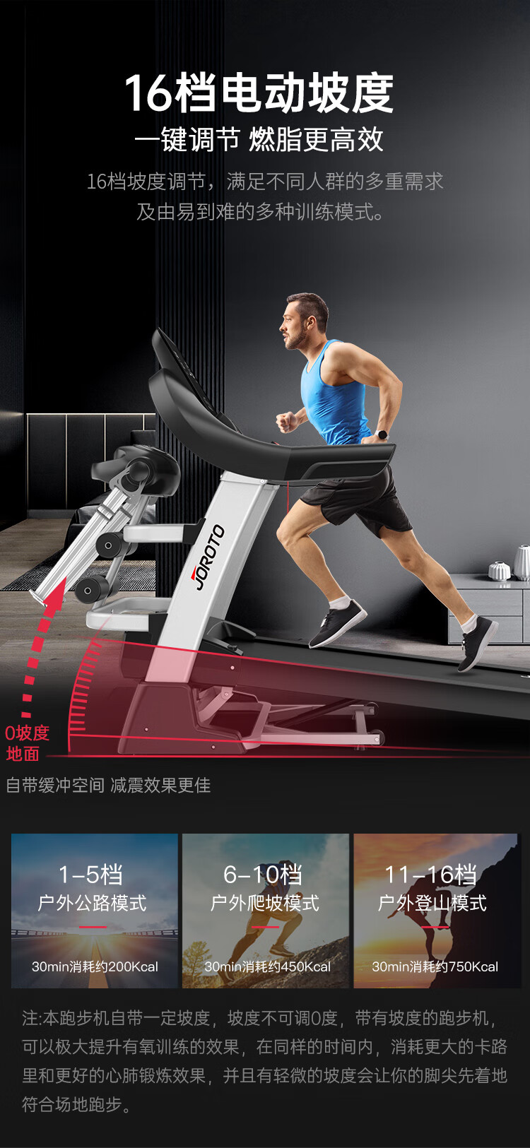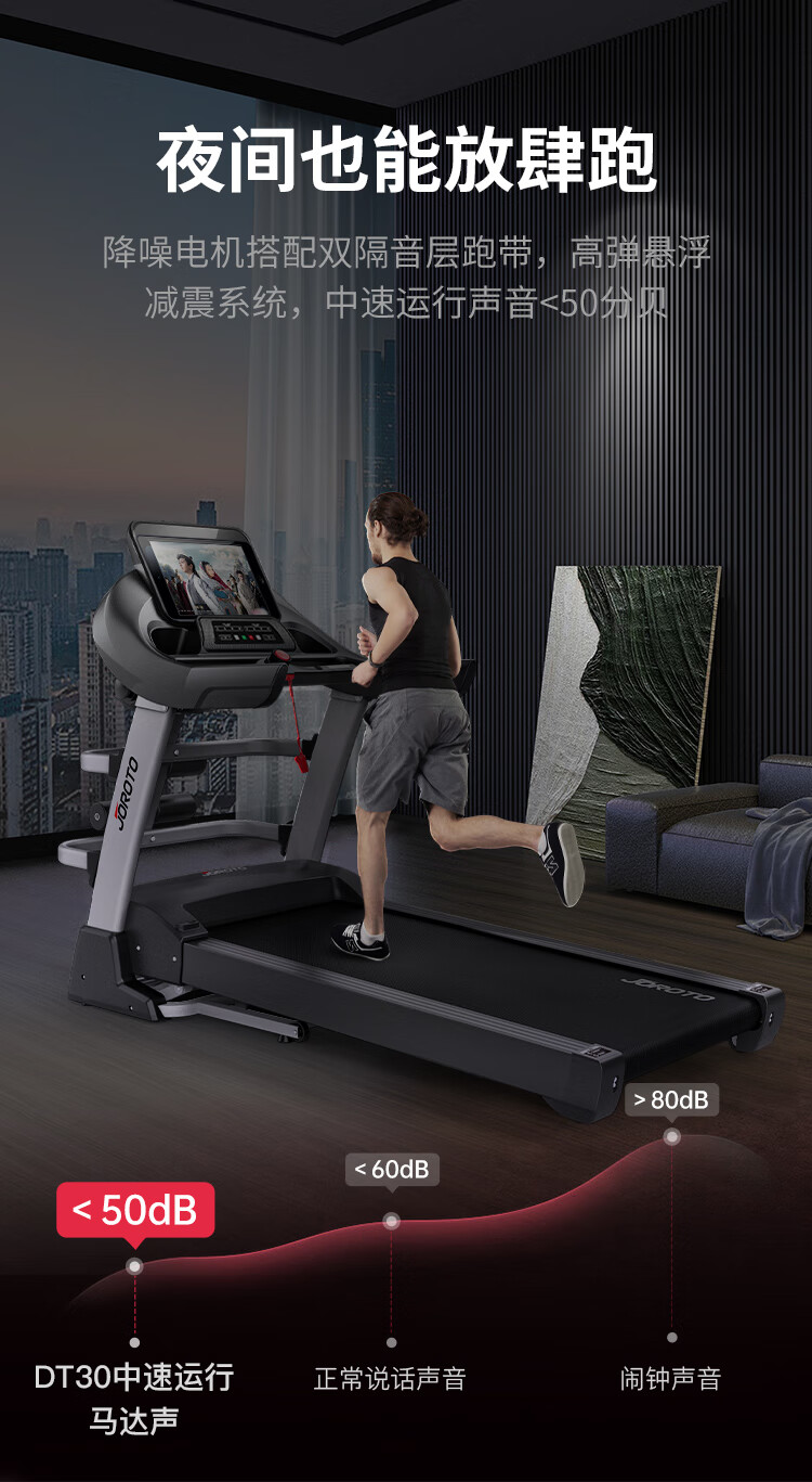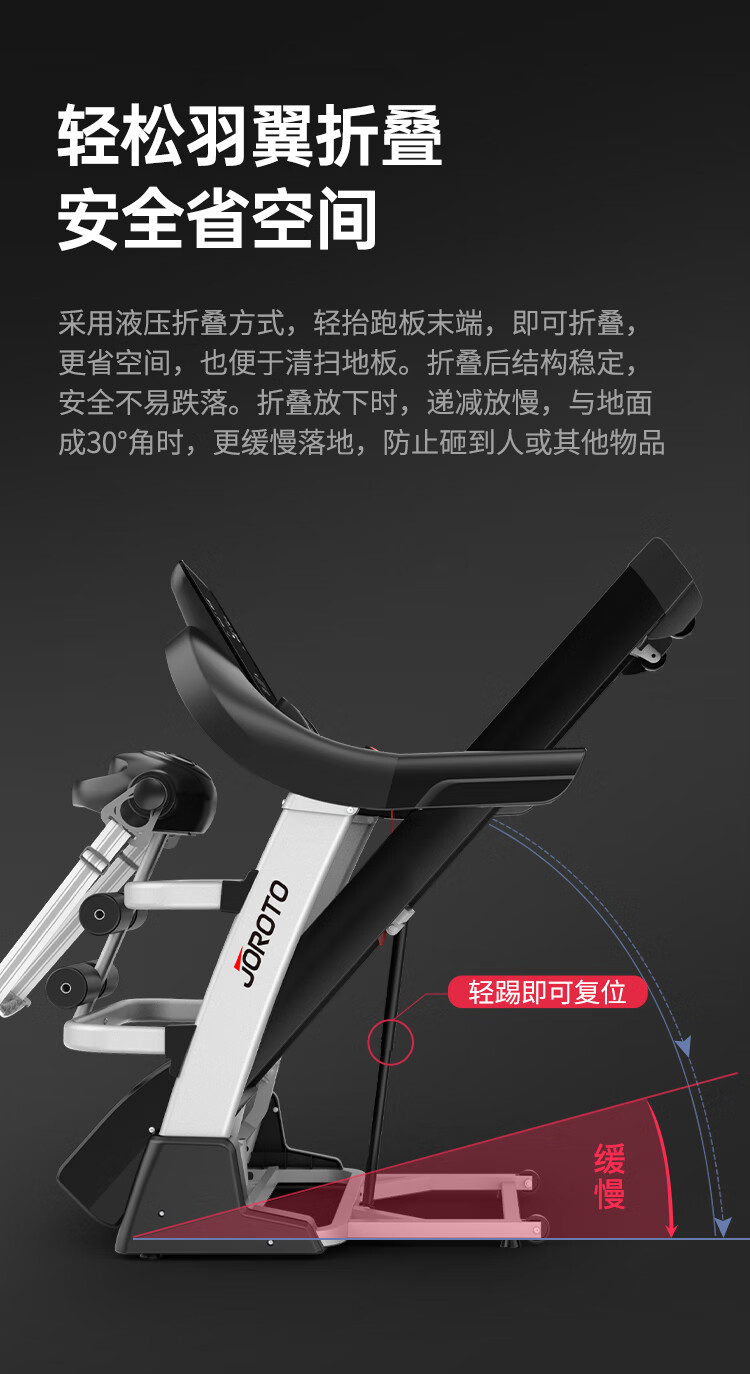 捷瑞特JOROTO跑步机家庭用可折叠减震走步机智能健身房运动健身器材DT30 300斤大承重/高弹悬浮减震/16档电动坡度