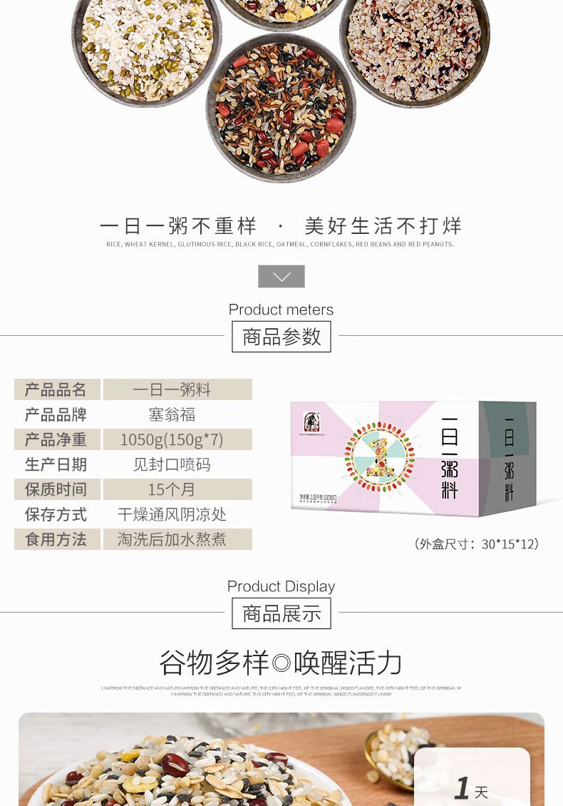 塞翁福 一日一粥料(粗粮 7天营养粥 早餐粥 礼盒装)1050g(150g*7)