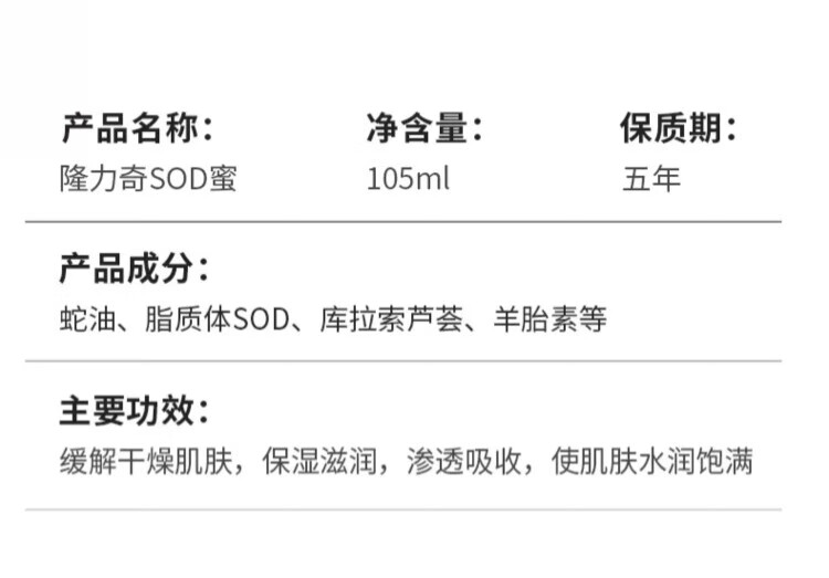 隆力奇羊胎素芦荟SOD蜜105ml秋冬季防干防裂滋养补水保湿嫩滑滋养肌肤 隆力奇羊胎素SOD蜜105ml