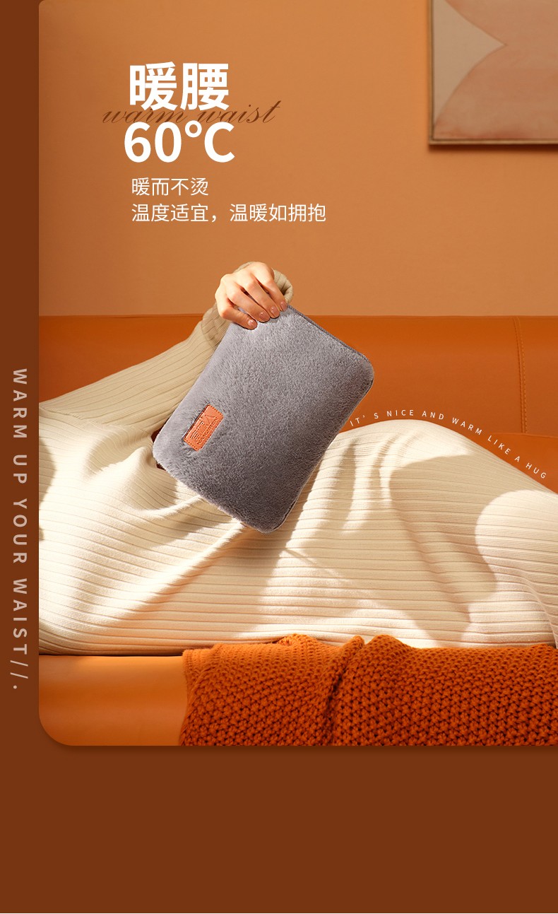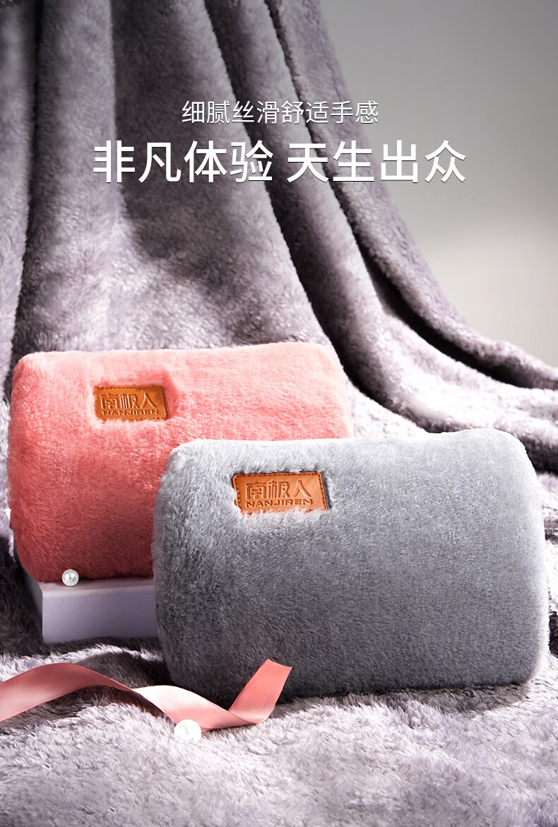 南极人(NANJIREN)热水袋充电防爆暖水袋暖宝宝女可爱毛绒暖手袋电暖宝暖手宝暖肚子 可拆洗-灰