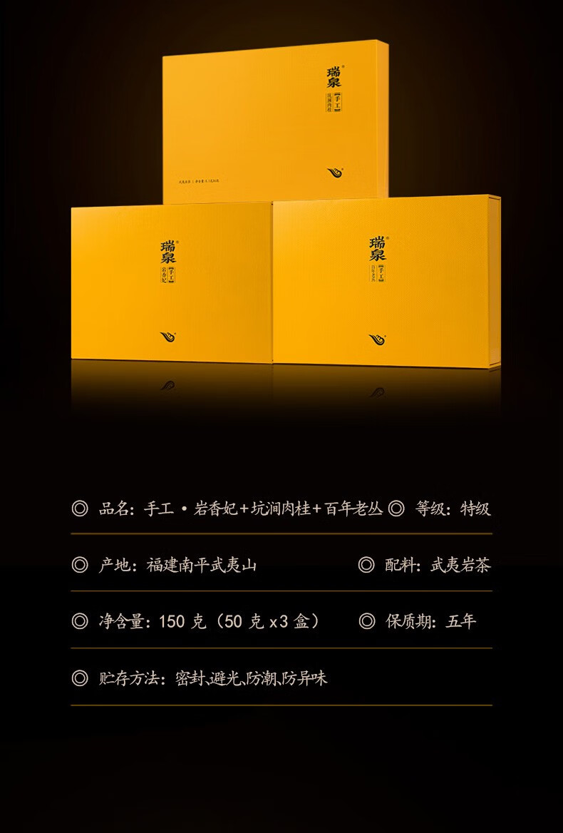 瑞泉岩茶 手工岩香妃+坑涧肉桂+百年老丛 特级乌龙茶大红袍茶叶礼盒装 手工系列组合装50g*3盒