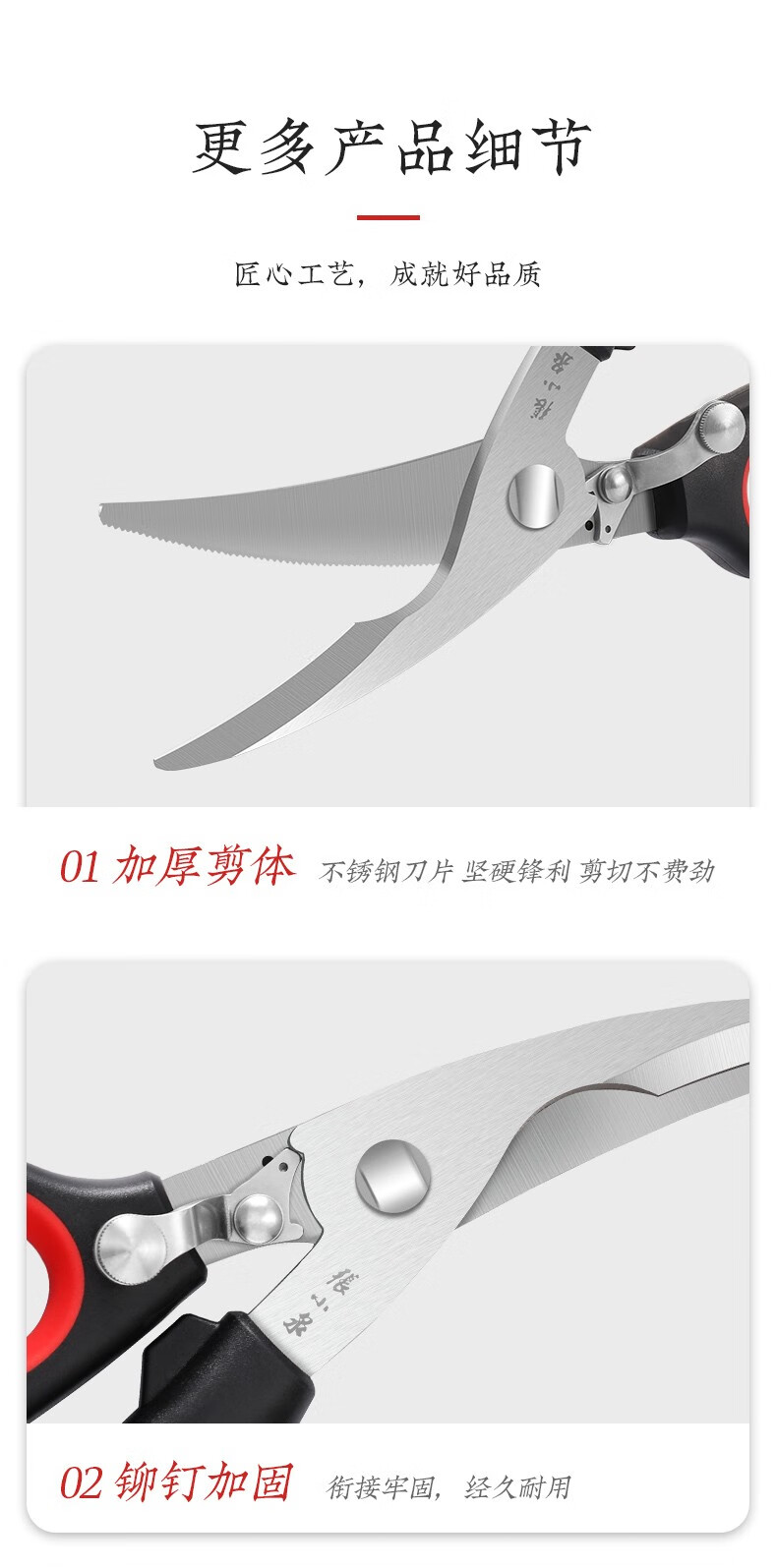 张小泉厨房剪刀红韵系列鸡骨剪多...