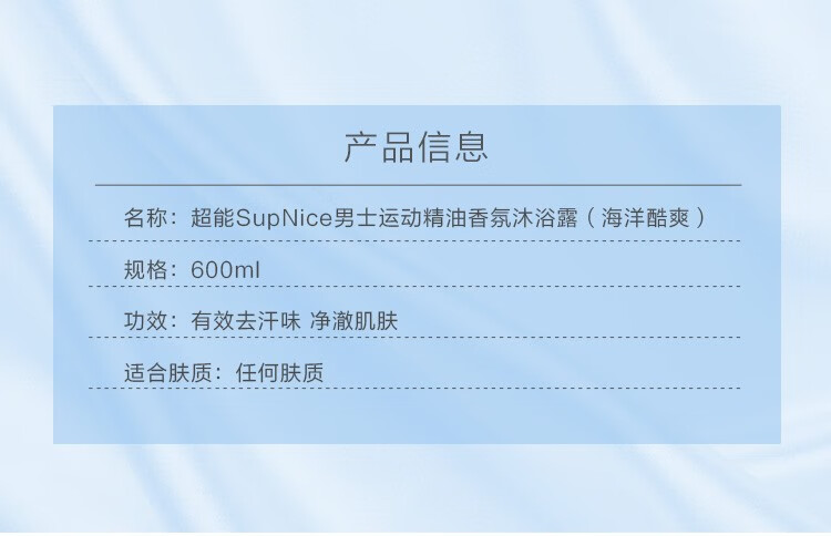 超能SupNice运动精油香氛沐浴露持久留香清爽去汗味 600ml(海洋酷爽)