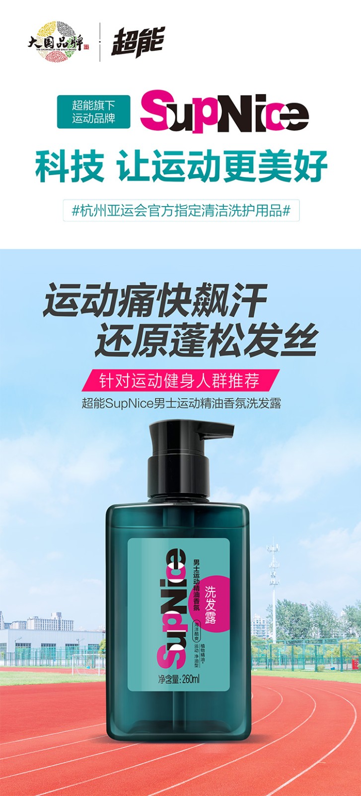 超能SupNice运动精油香氛洗发露净油去汗蓬松发丝控油洗发水 260ml(活力清新)