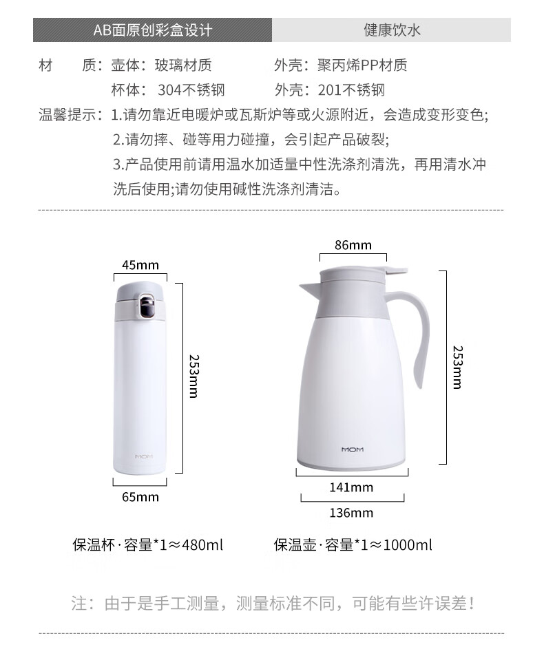 山重山 礼品批发活动礼物实用奖品开业促销商务礼物定制LOGO保温壶6029 礼盒装壶1L+杯460ml 1L
